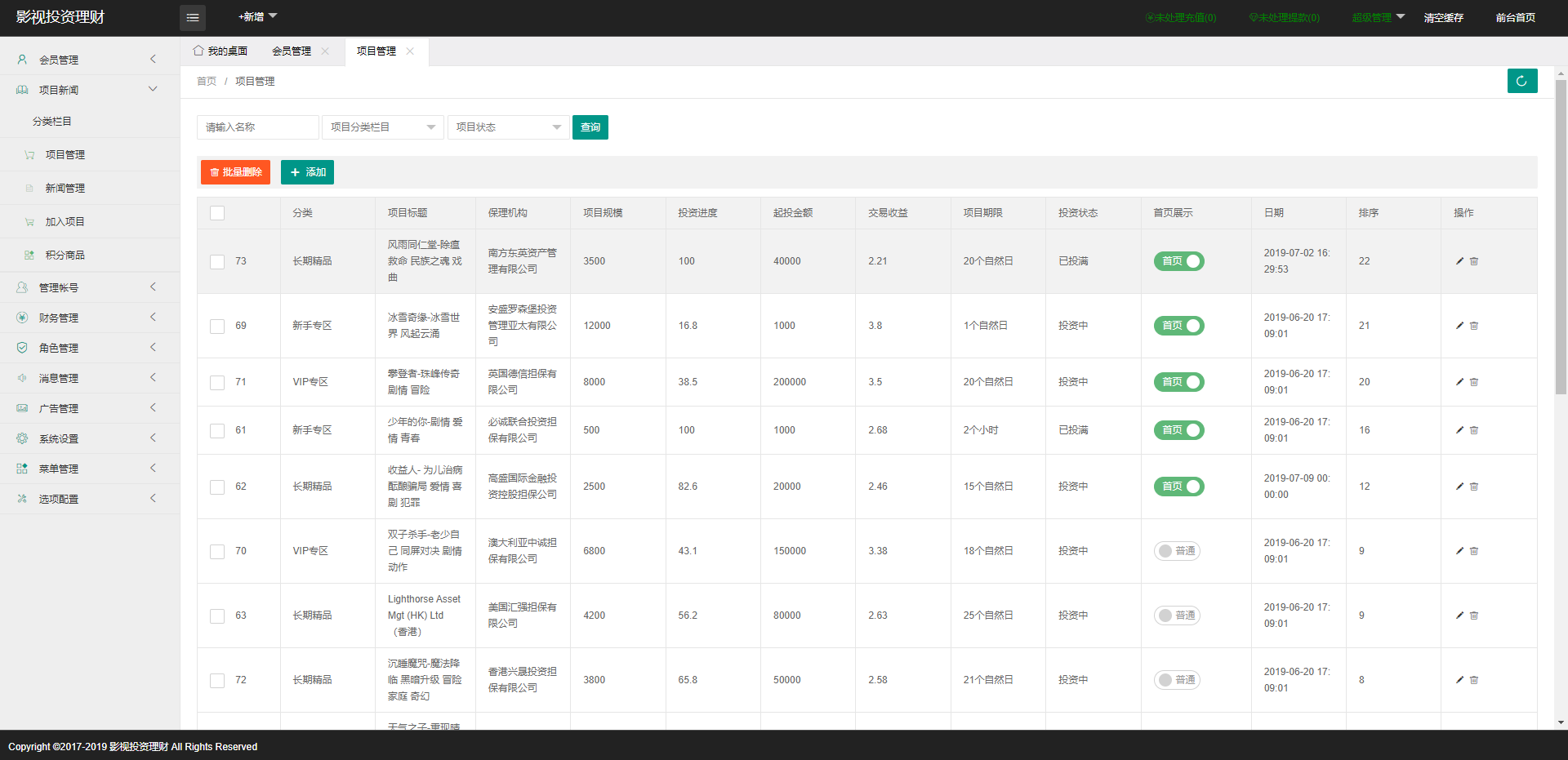 这套算是比较经典的影视众筹投资系统,后端laravel5框架