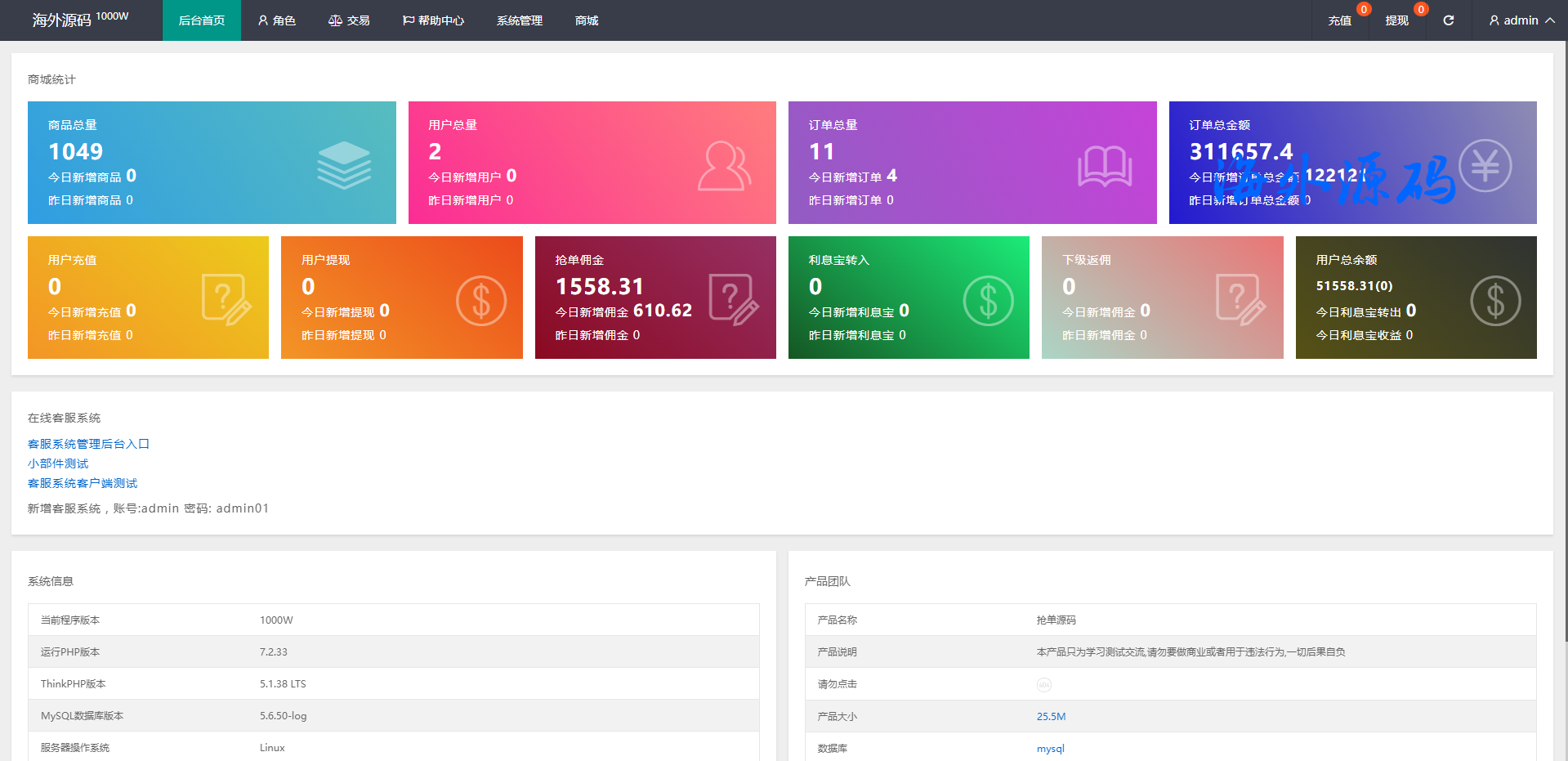 韩国抢单刷单系统/多语言刷单商城/打针/信用分/代理后台