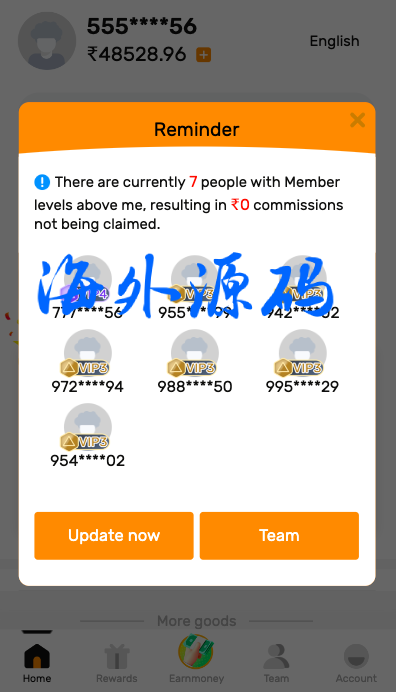 一套海外的拼团回购投资理财系统,前端英文跟印地语