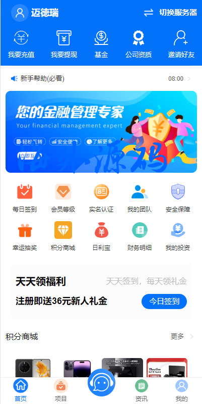 系统功能支持:签到、抽奖、积分商城、余额宝、余额互转等功能