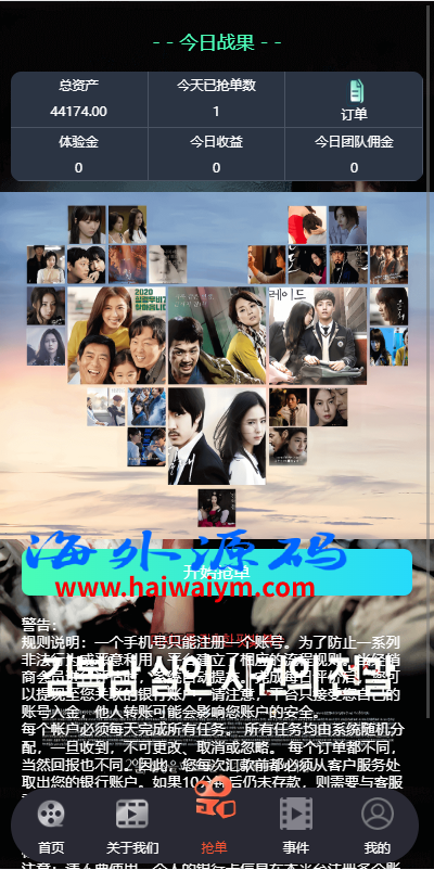 多语言电影抢单刷单系统/影视连单卡单/签到/任务
