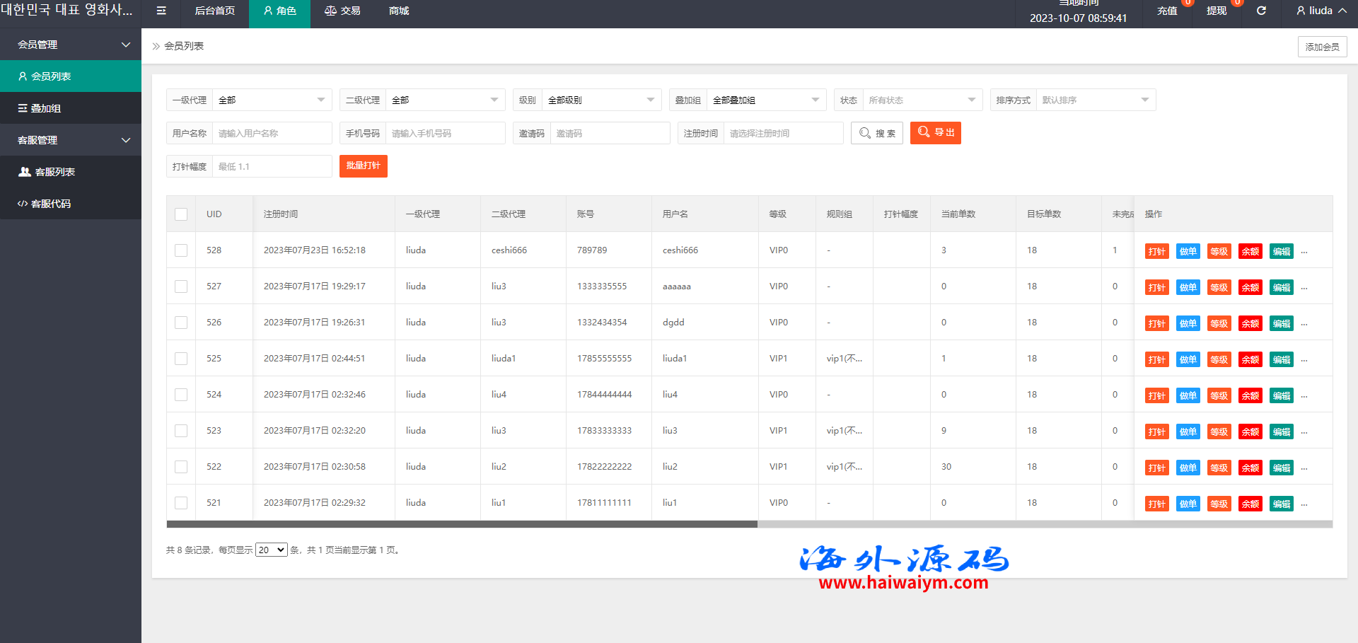韩国抢单刷单系统/多语言刷单商城/打针/信用分/代理后台