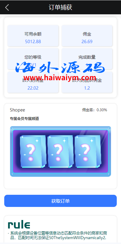 海外商城抢单刷单系统/预设订单/重置订单/签到