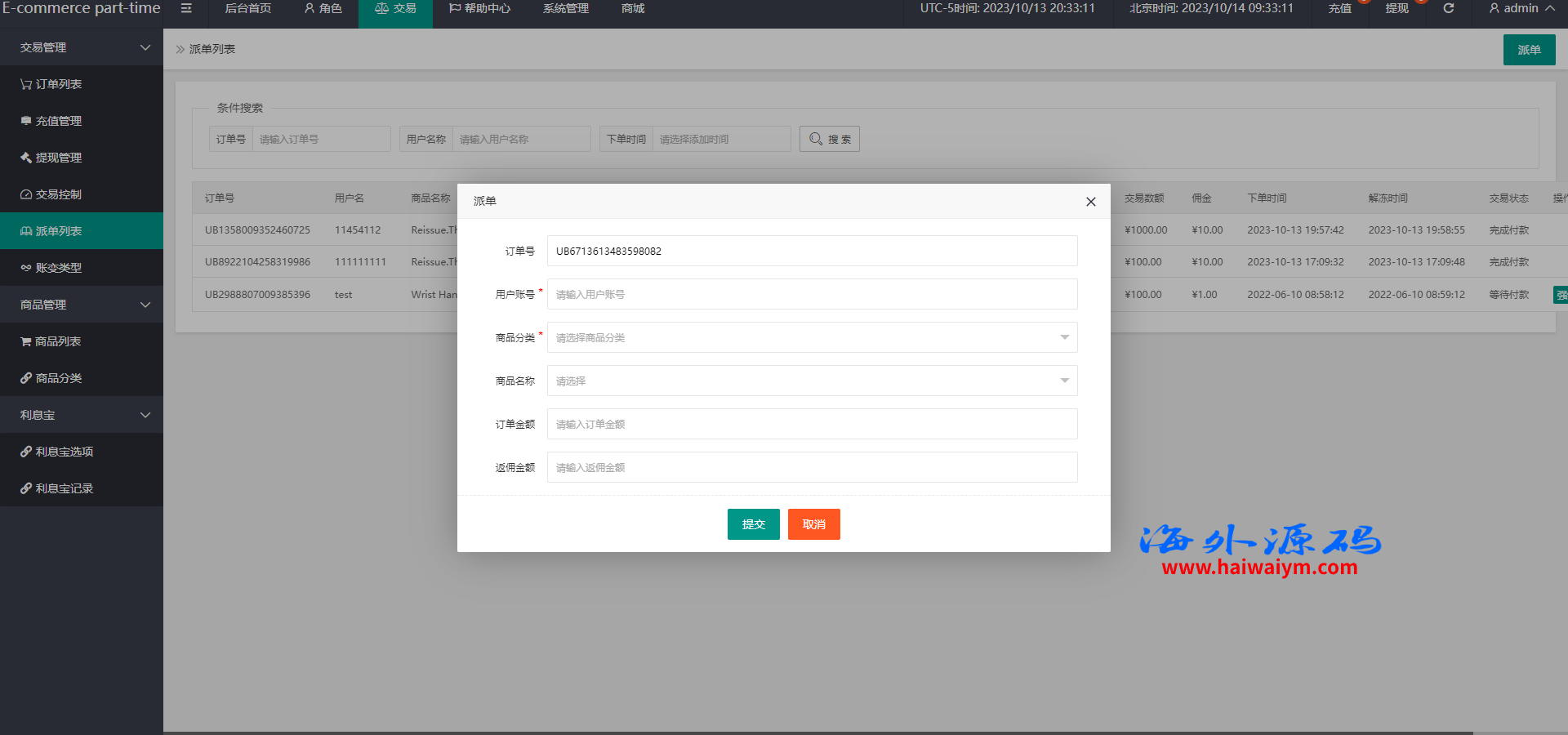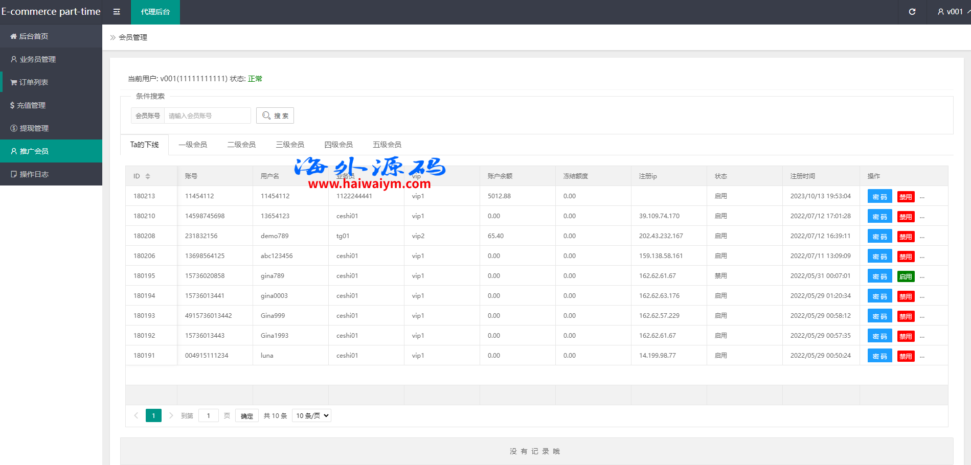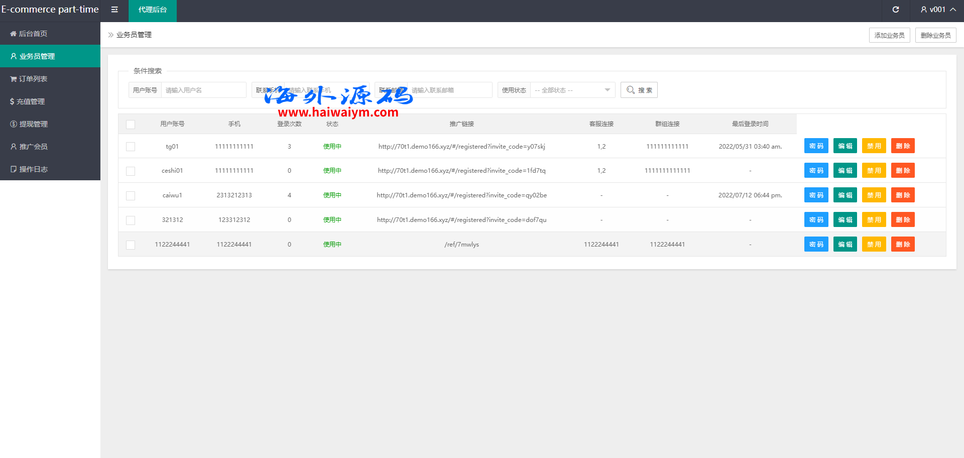 带后台派单,前端直接订单提交,带代理后台业务员推广