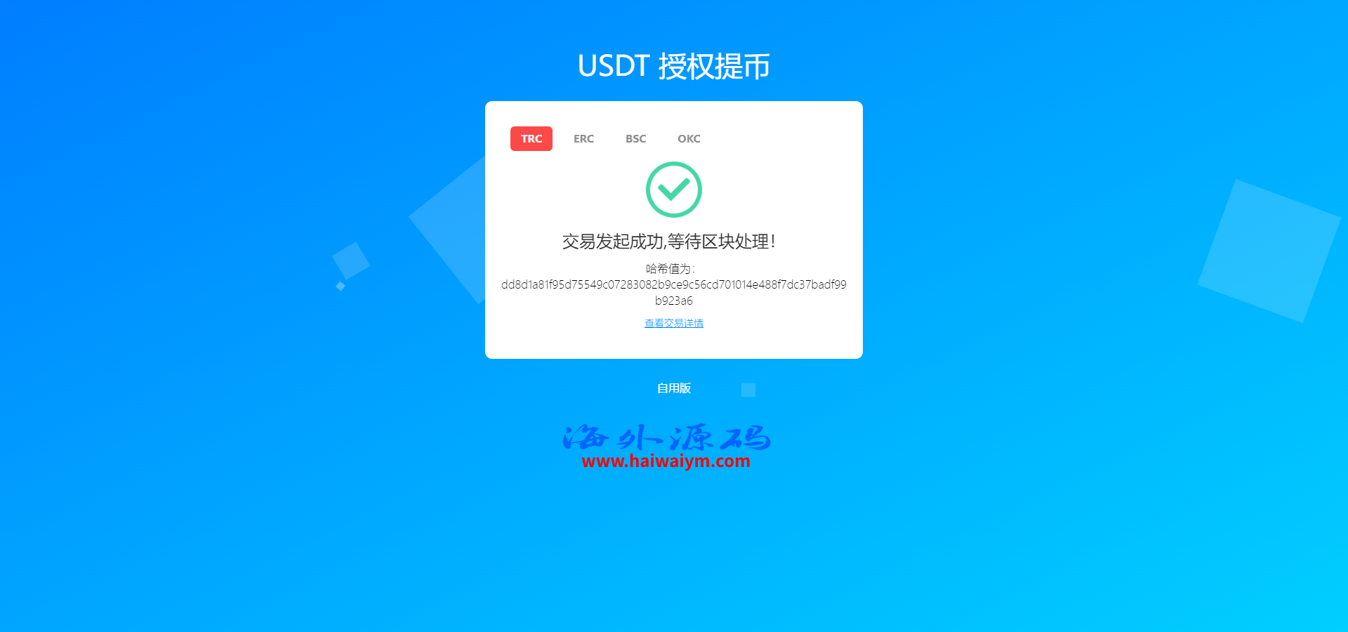新版授权秒U系统/TRC/ERC/OKC/BSC多链多模板/多接口盗U系统