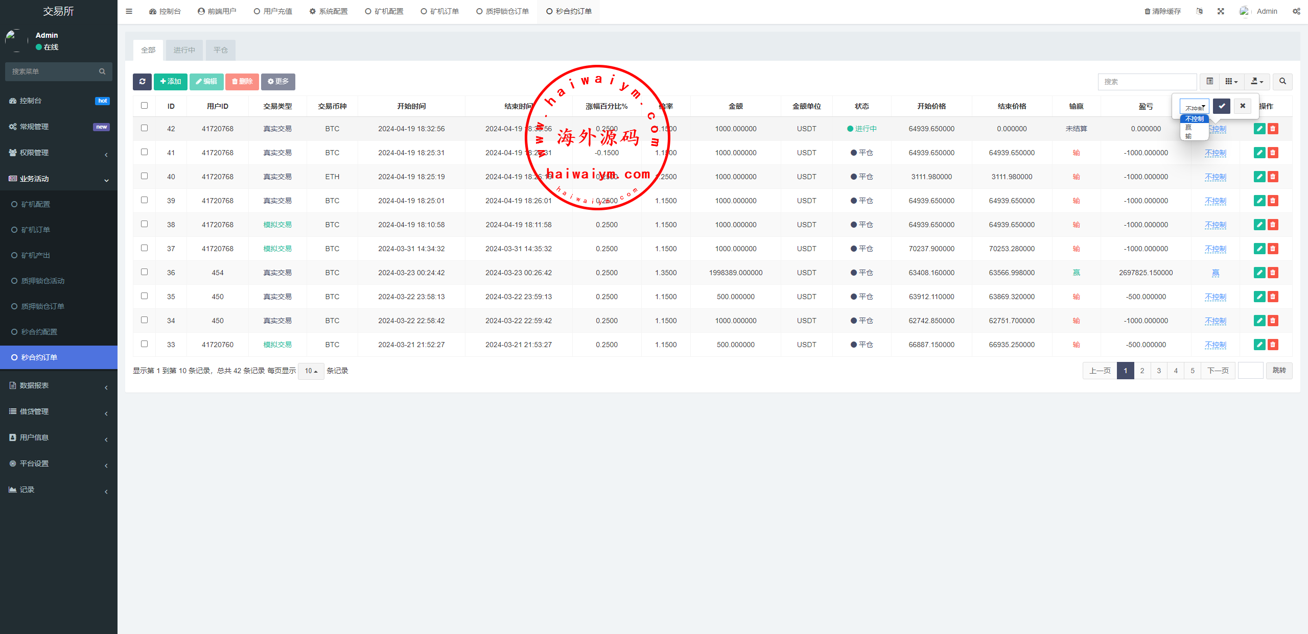 海外多语言交易所/合约/期权/秒合约/插针控制/申购