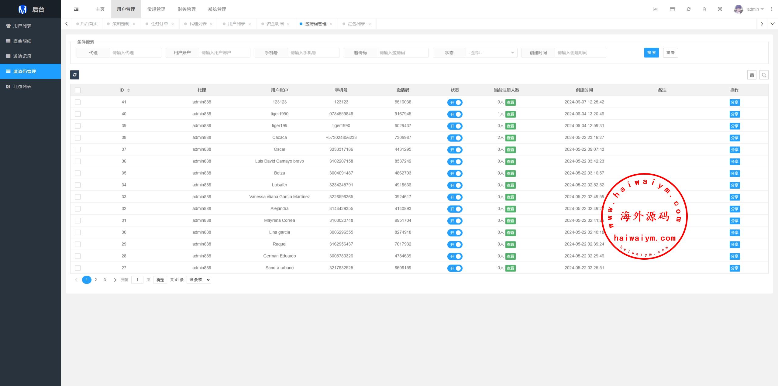 系统支持策略配置,后台共享代理后台独立,系统基本符合市场需求,单独的代理后台等功能