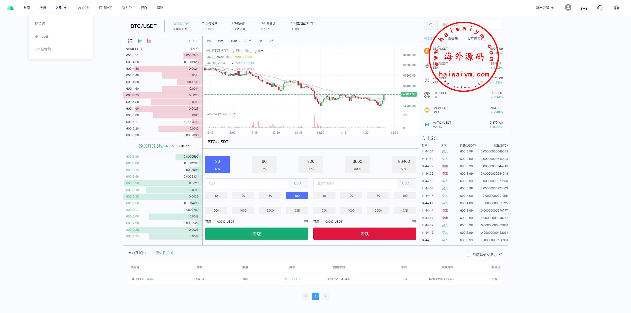 多语言虚拟币交易系统/秒合约交易/伪交易所/时间盘