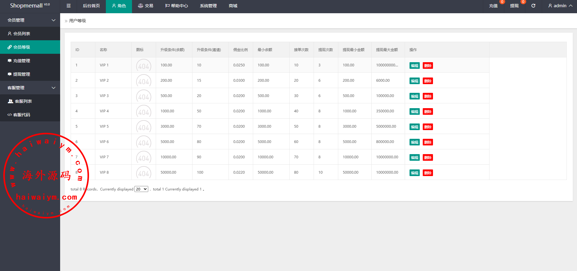 系统功能支持:支持分组、百分比、固定值、连单设置、充值彩金等功能