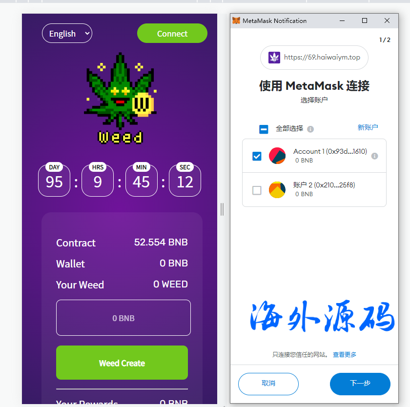 功能:由几个BAYC持有者搞出来的Defi协议资金盘日化率5%,BNB买虚拟算力挖叶子(矿)。