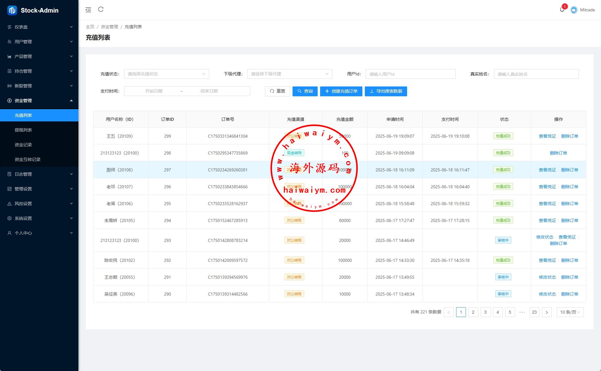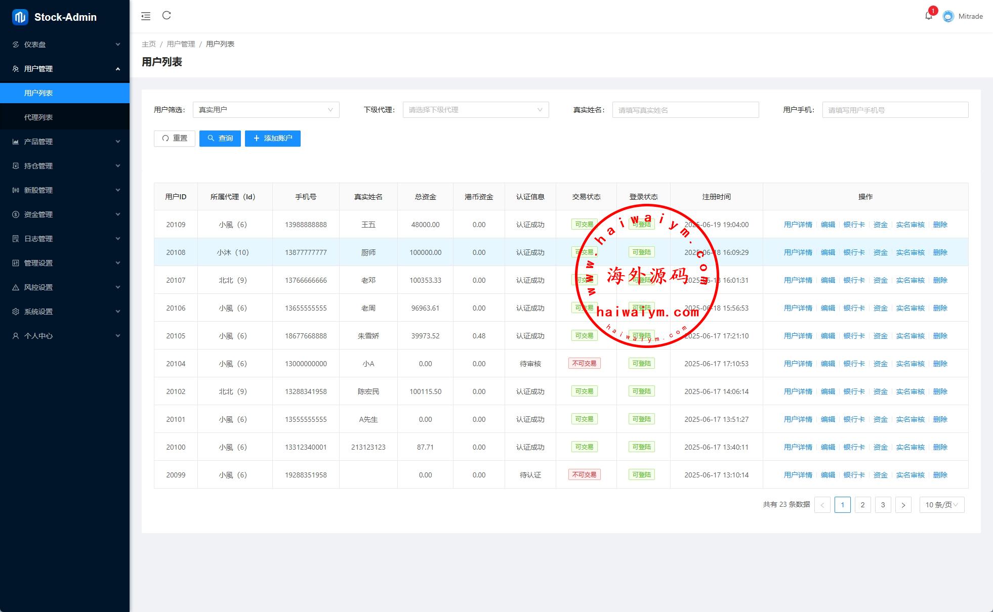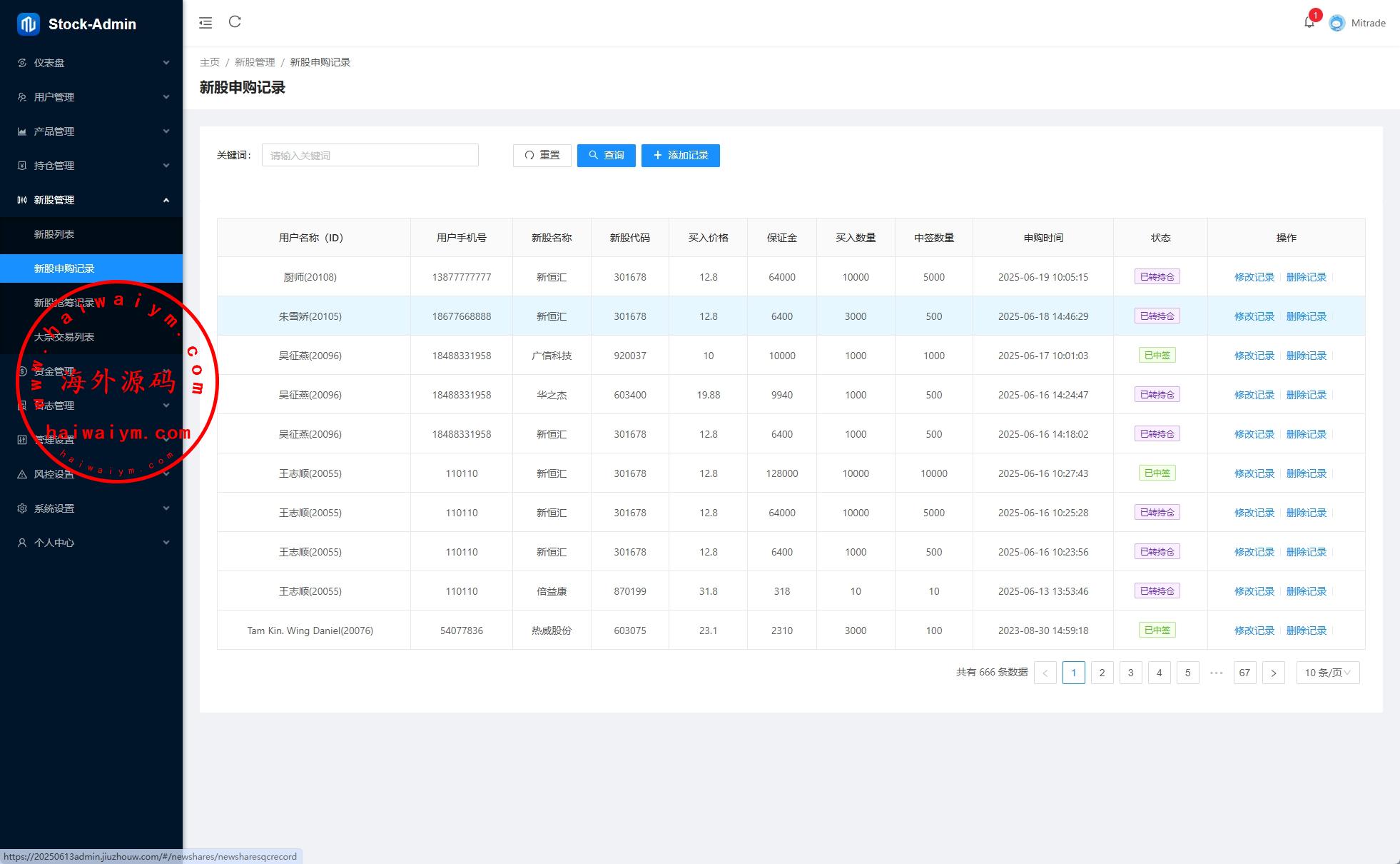 前端VUE,后台VUE,API端JAVA开发带源码 系统功能齐全,二开:涨停买入1000,后台手动通过100-900等