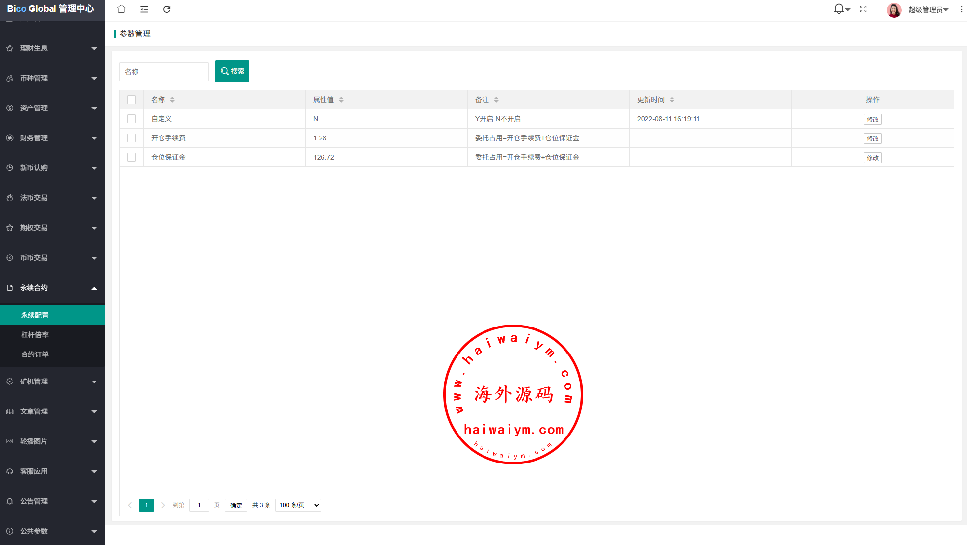 系统功能:永续合约,期权合约,秒合约,平台币,矿机质押,