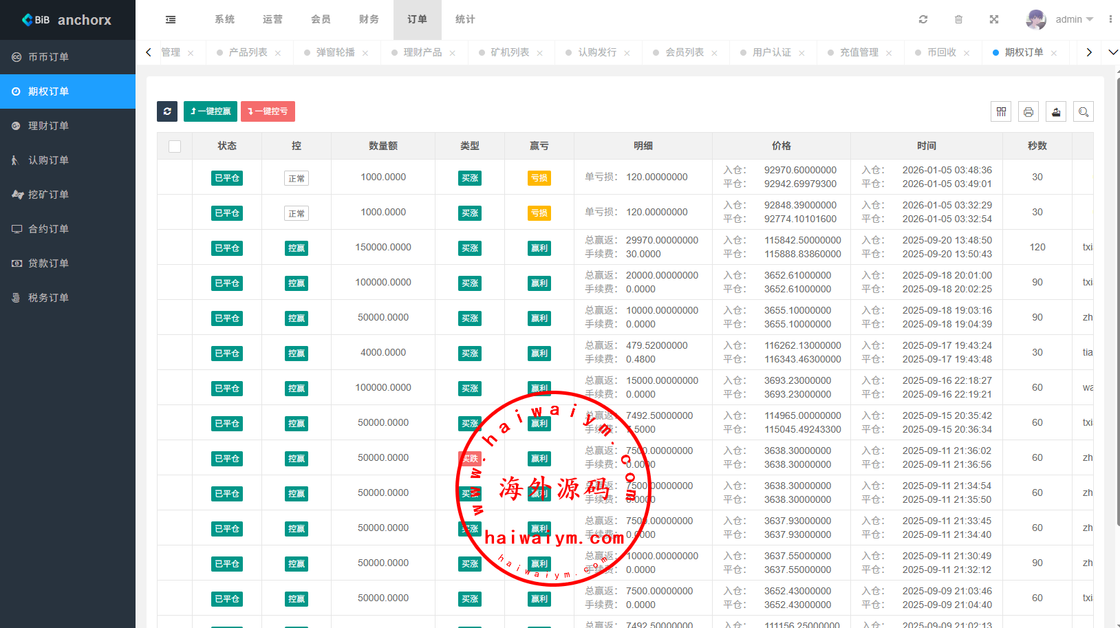 海外多语言交易所/合约/期权/秒合约/插针控制/申购