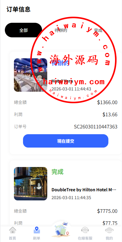 海外酒店抢单刷单系统/卡单连单/信用分/前端uniapp