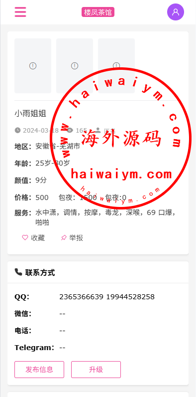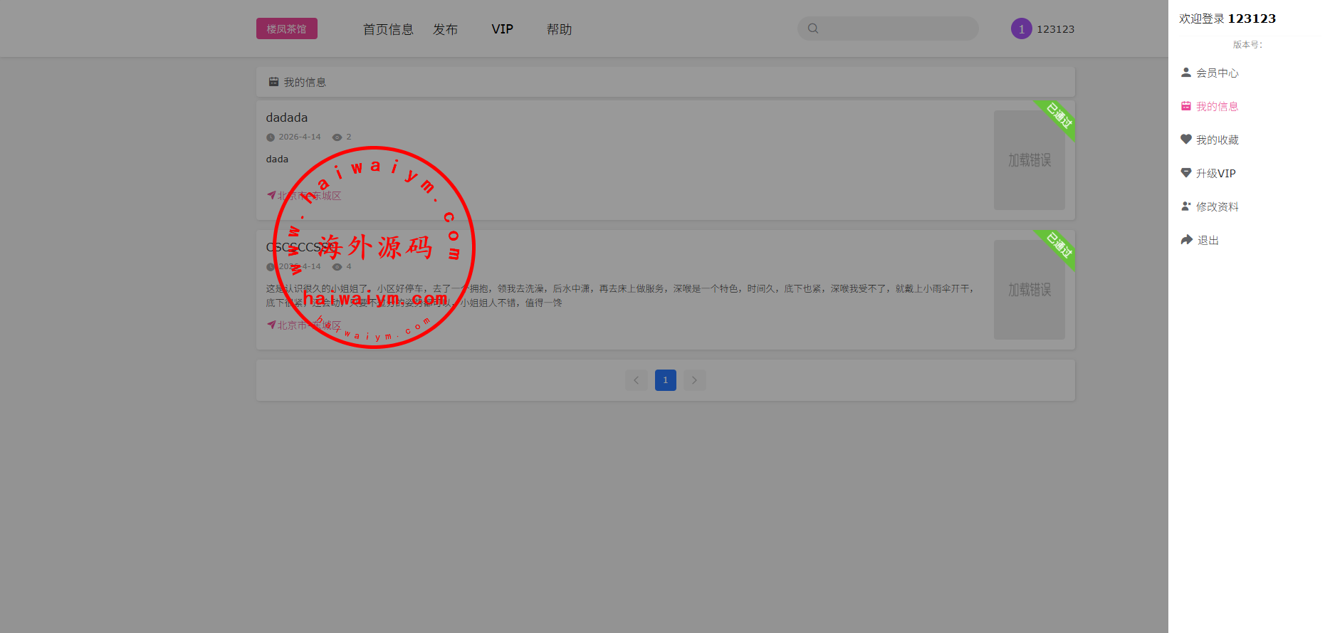 JAVA版同城楼凤系统/楼凤茶馆/信息发布/信息网此套是开源版本,前端uniapp开发电脑手机自适应,后台VUE,服务端JAVA开发全开源