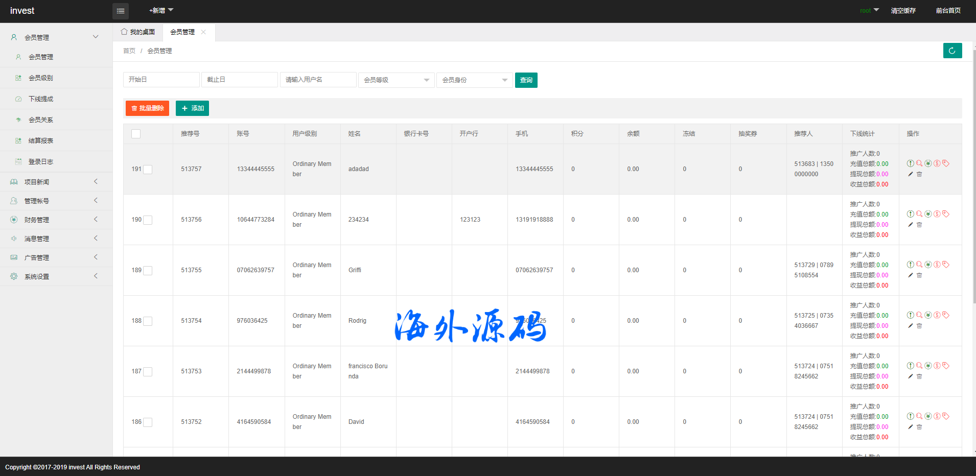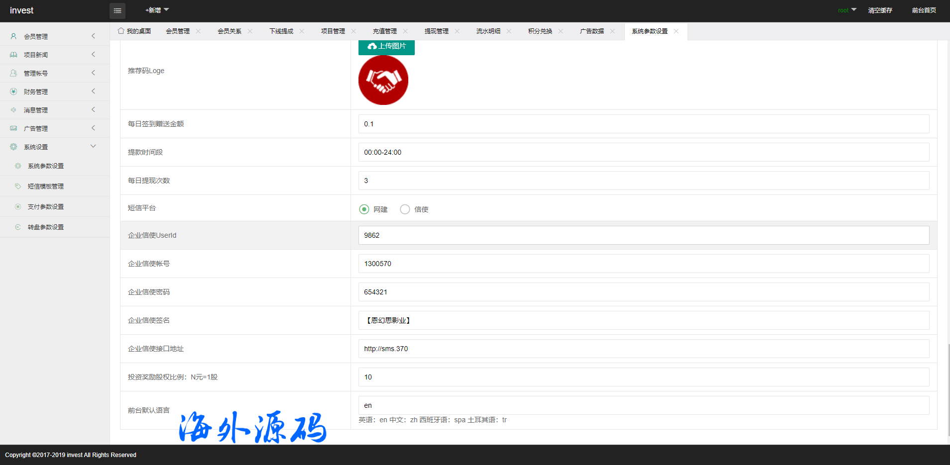 新版海外投资理财系统/多语言投资返利/IM社区/10级分销