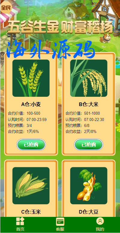 一:五谷生金有五个稻场,严格控单抢单模式,抢到可以得到持仓溢价收益!抢到就是赚到,小伙伴们加油!