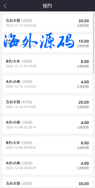 每天抢购交易时间分5个时段,在每个规定时间段内,抢到则能下单,抢不到只能等下一轮,抢不到退回预约粮票。