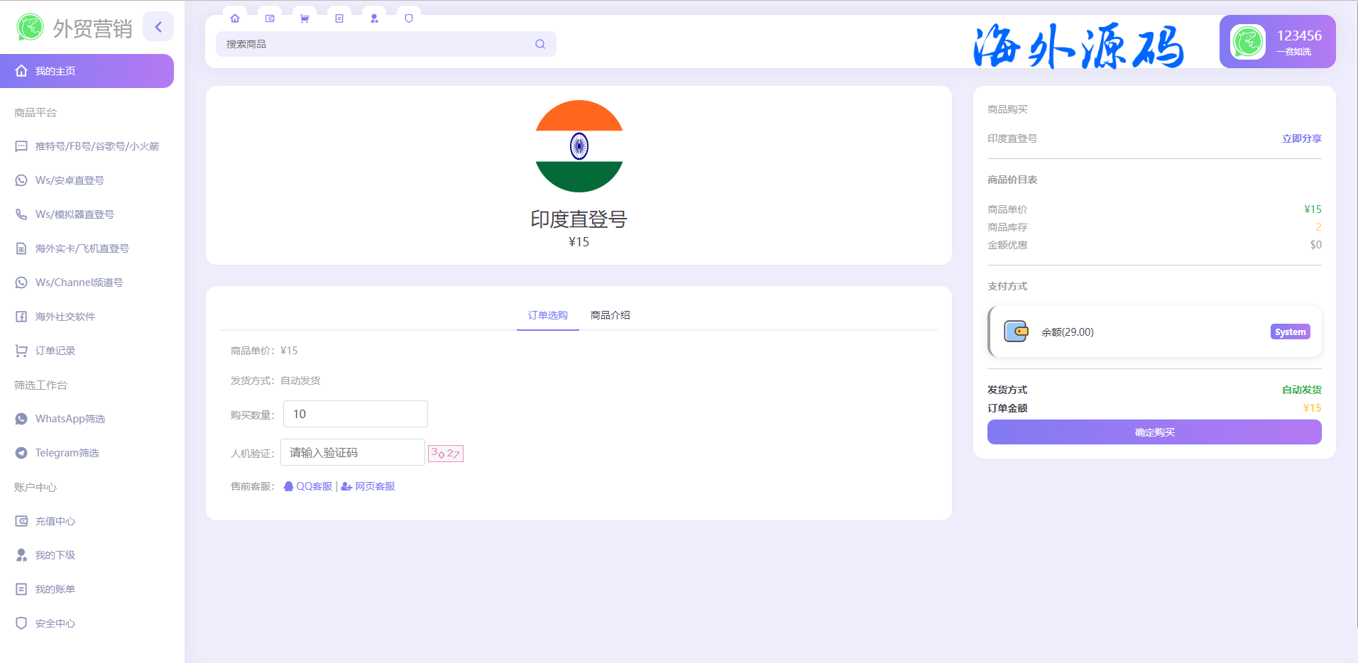 1.后台上传各种账号前台可以下单购买
