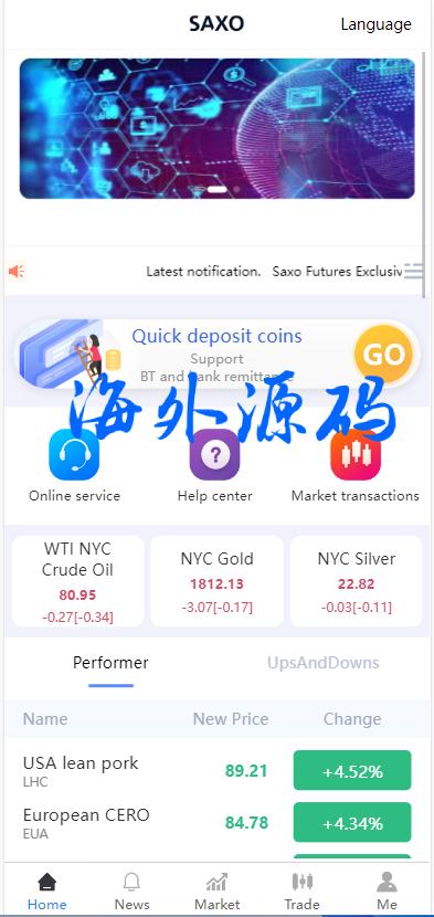 源码大概就是微盘源码,前端仿交易所类型UI,前端是vue源码