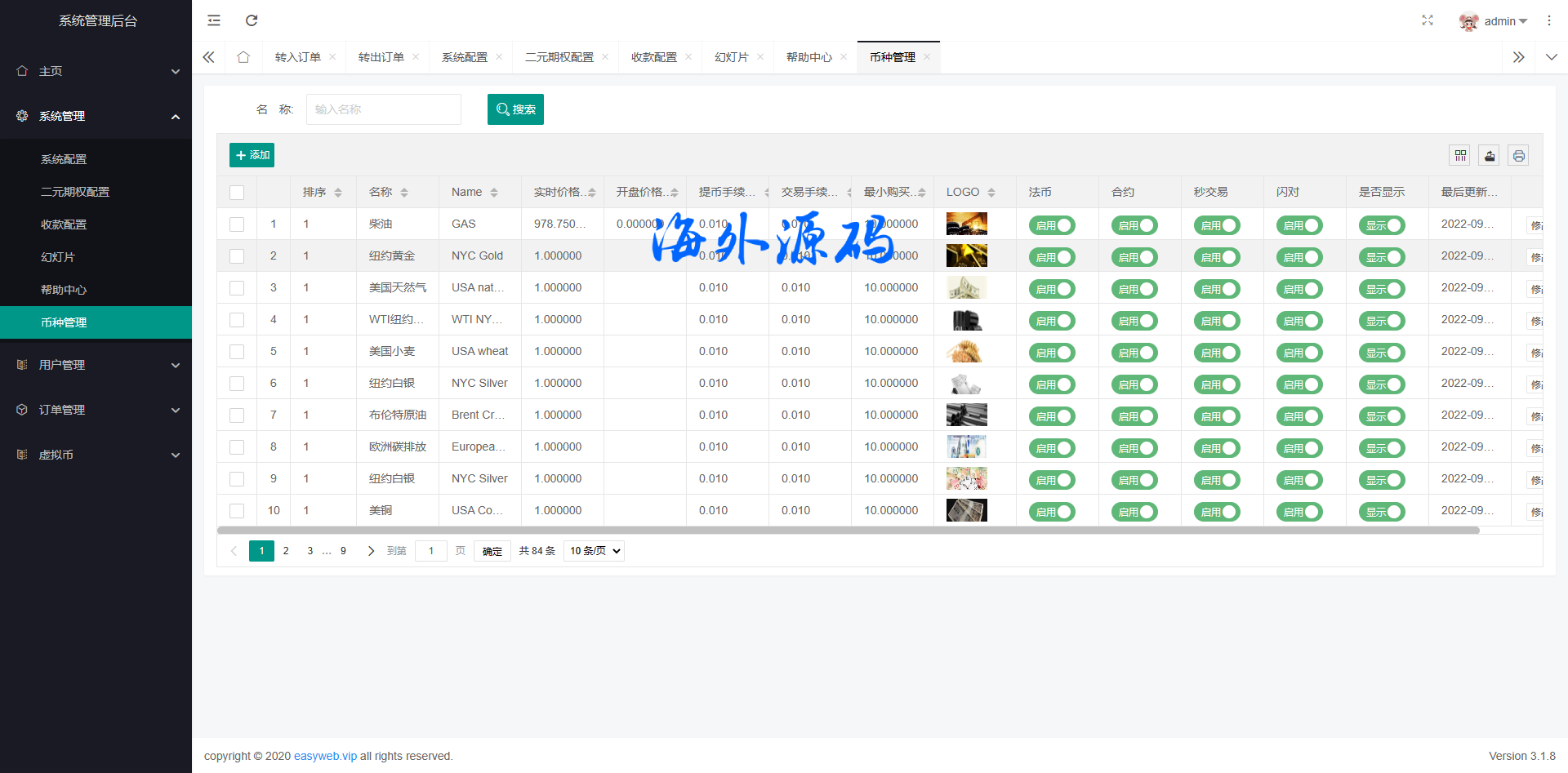 多语言虚拟币交易系统/秒合约交易/伪交易所/时间盘