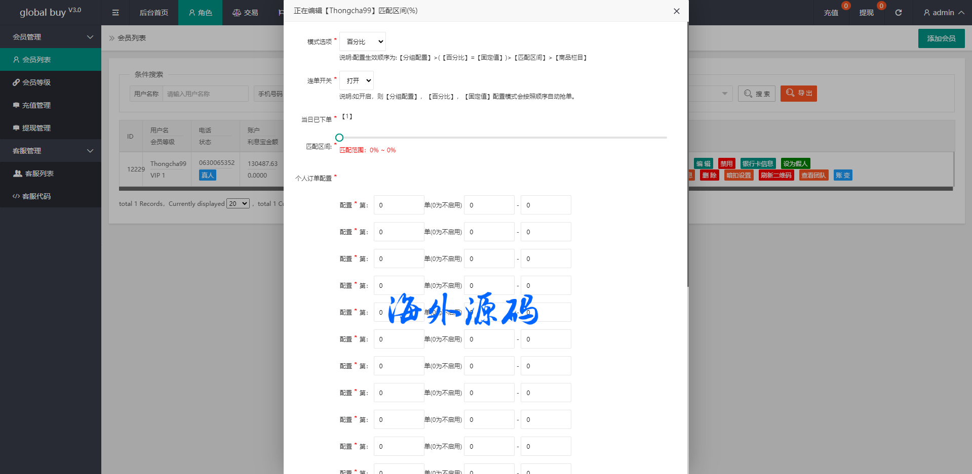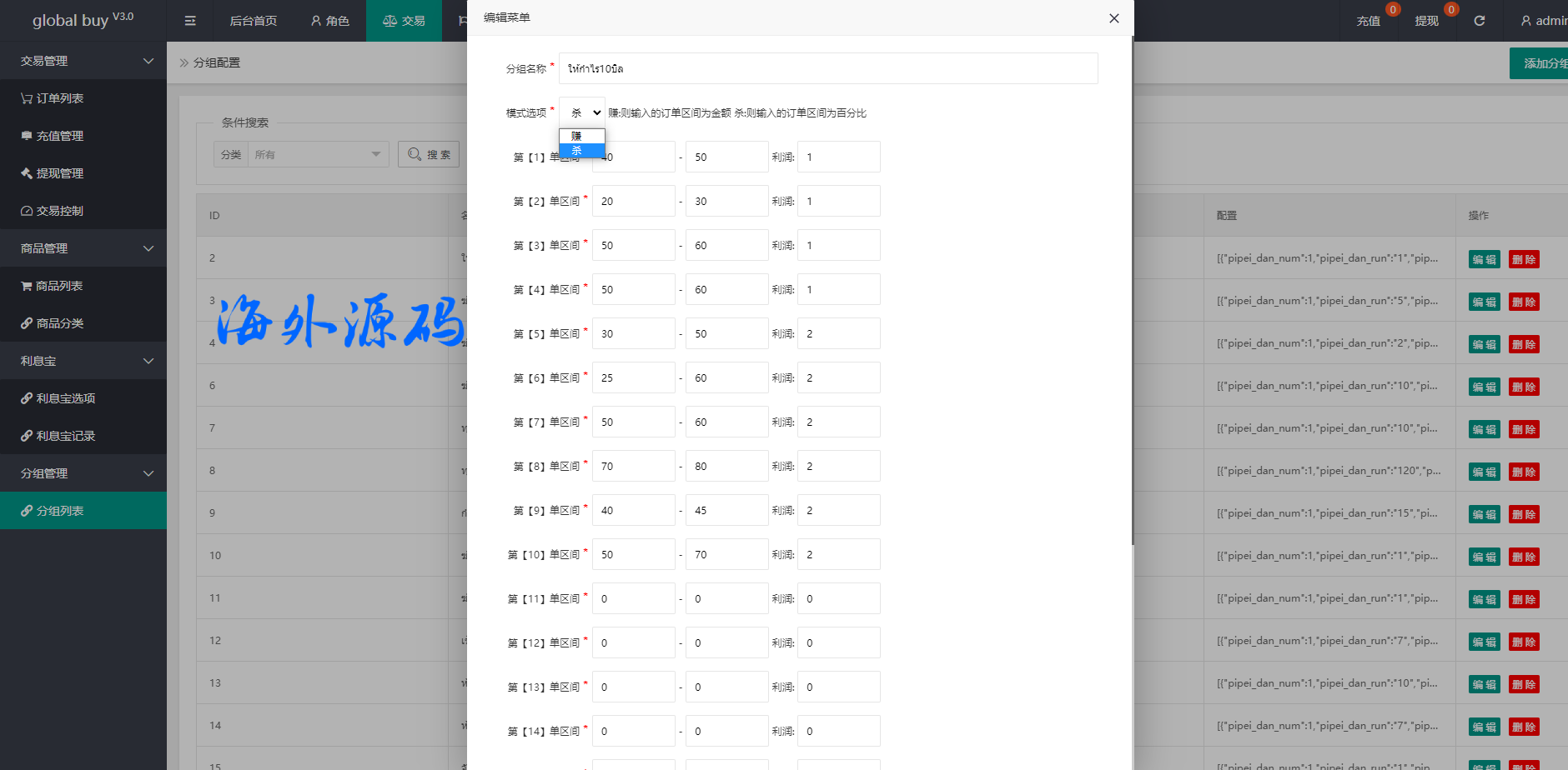 功能支持分组、百分比、固定值、连单设置、充值彩金等众多功能