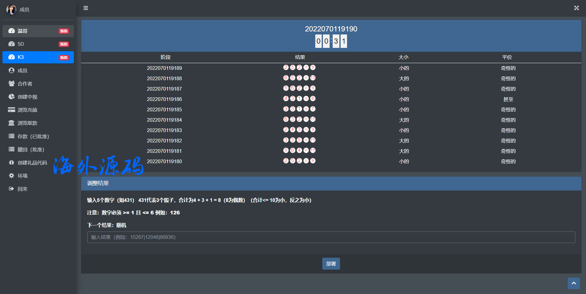 多语言彩票游戏/海外彩票游戏/快三游戏/竞猜下注游戏/控制开奖