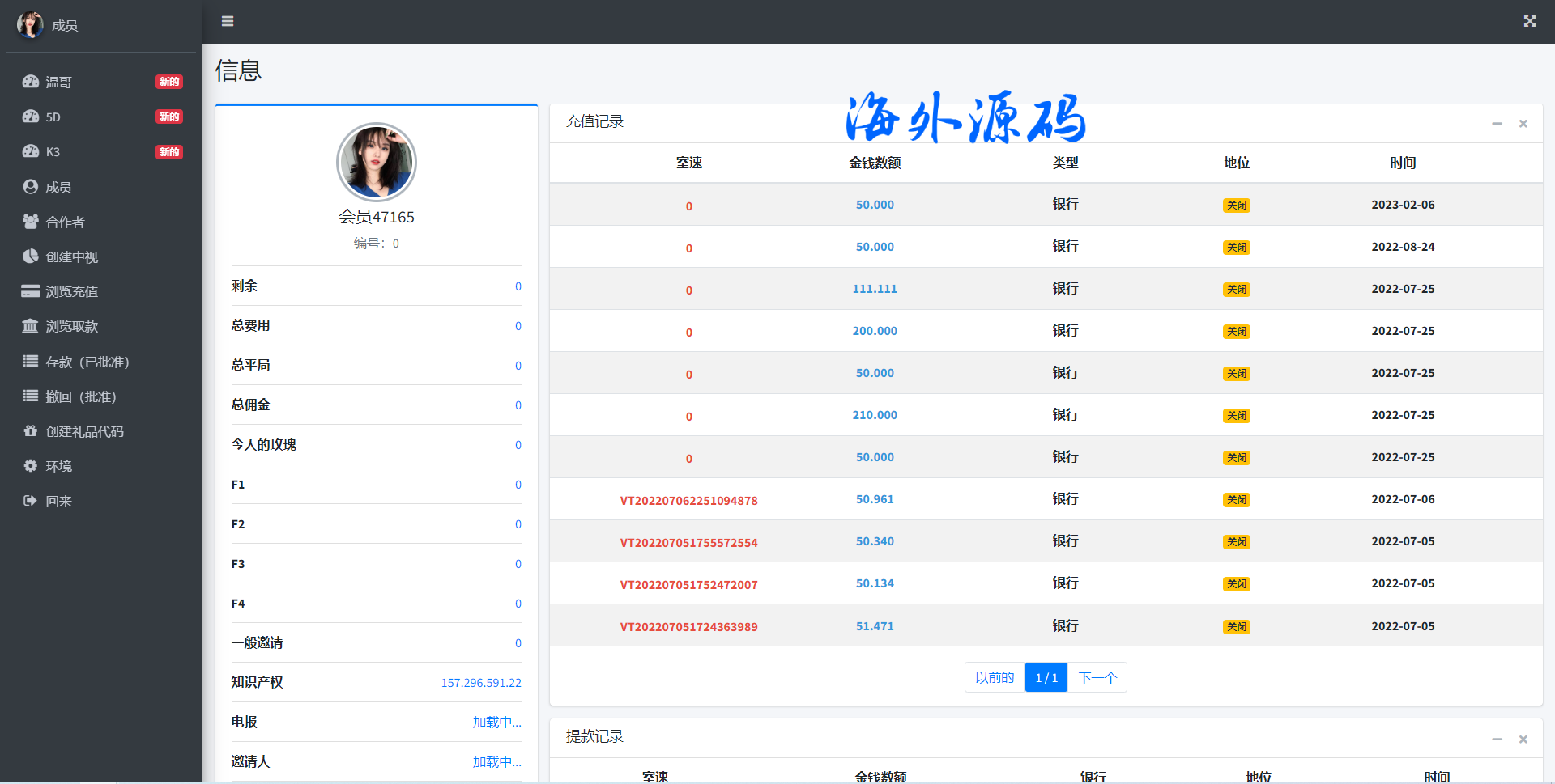 系统是针对越南本土开发的下注游戏带开奖控制,前后端均为越南语言
