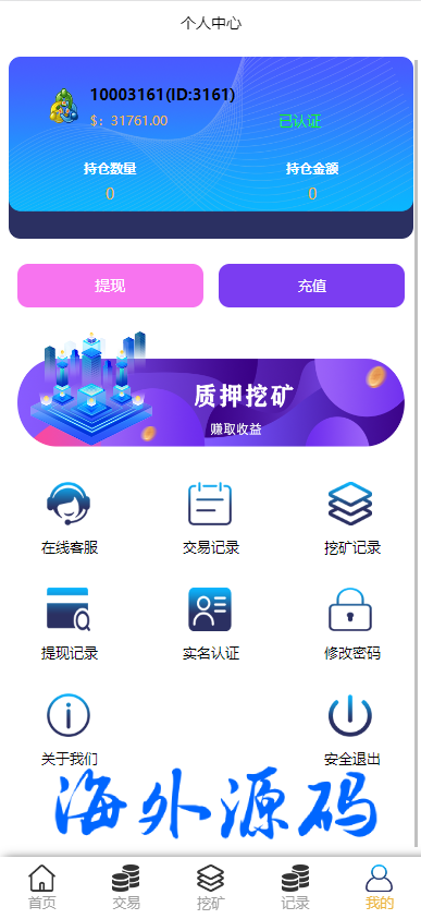 系统功能控制齐全,新增了矿机质押理财功能