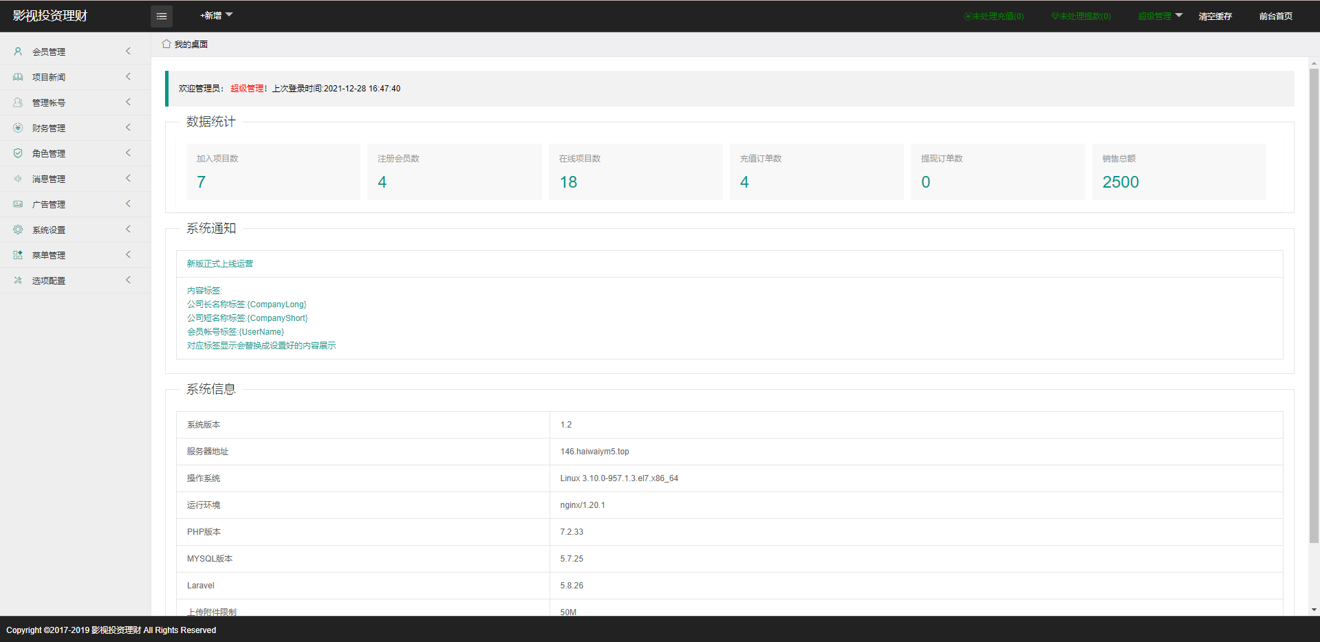 这套算是比较经典的影视众筹投资系统,后端laravel5框架