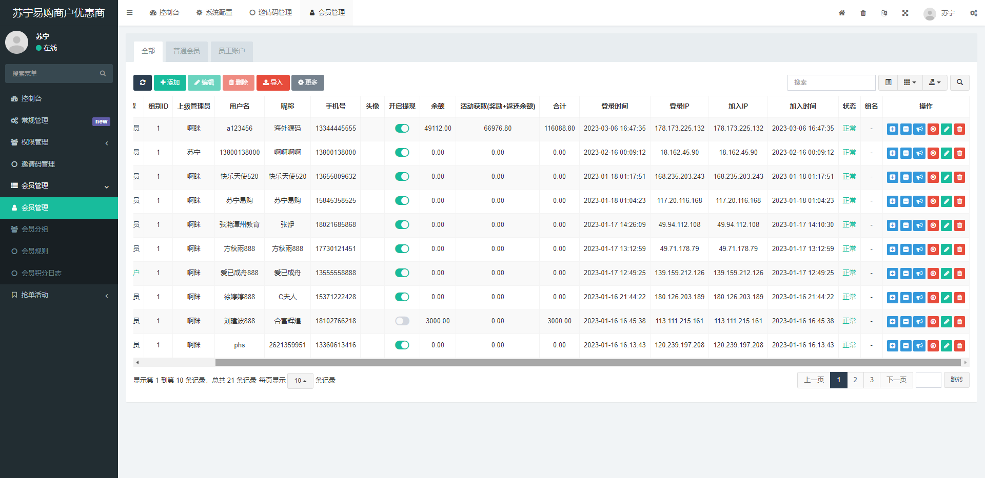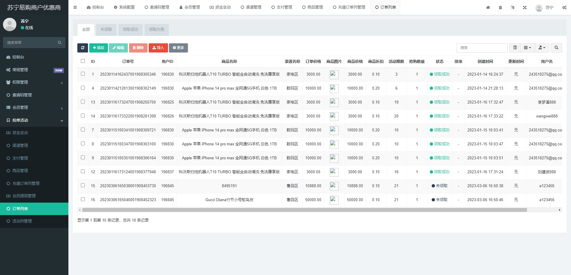 此套是全新开发的苏宁易购优惠卷投资系统,后端使用fastadmin框架