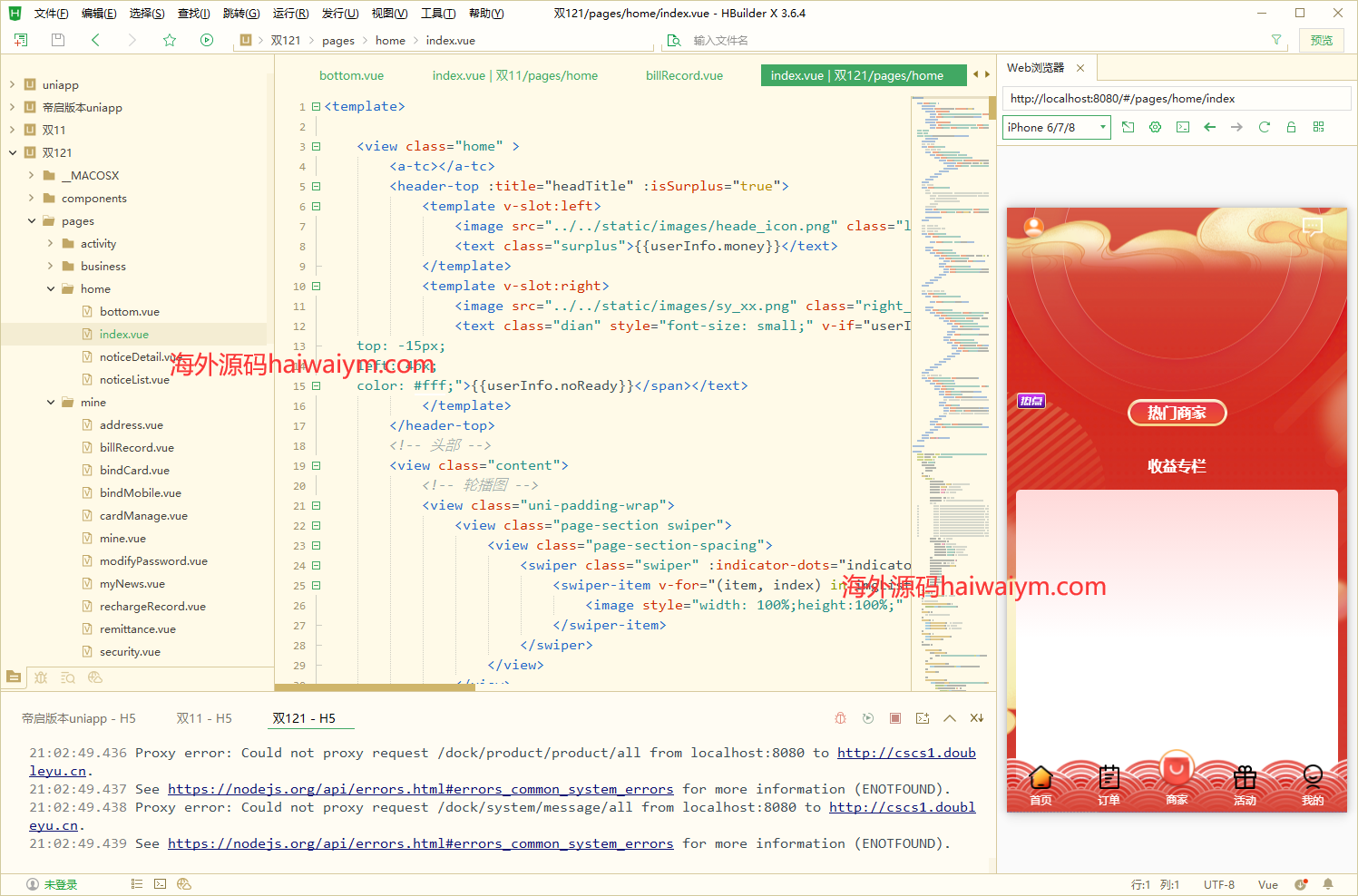 六套前端uniapp,api是php的,后端vue,代理端vue,全部开源