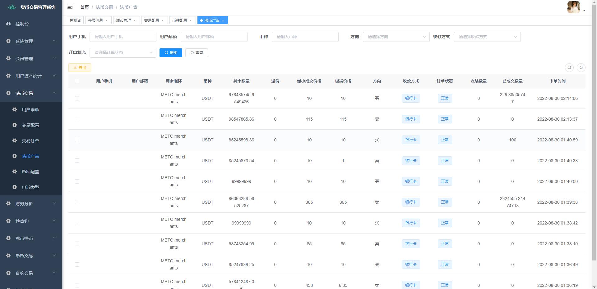 多语言虚拟币交易系统/秒合约交易/伪交易所/时间盘