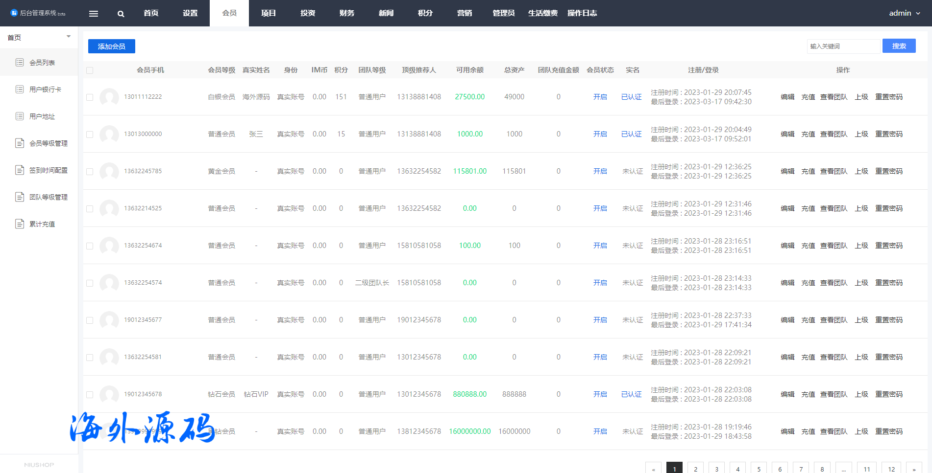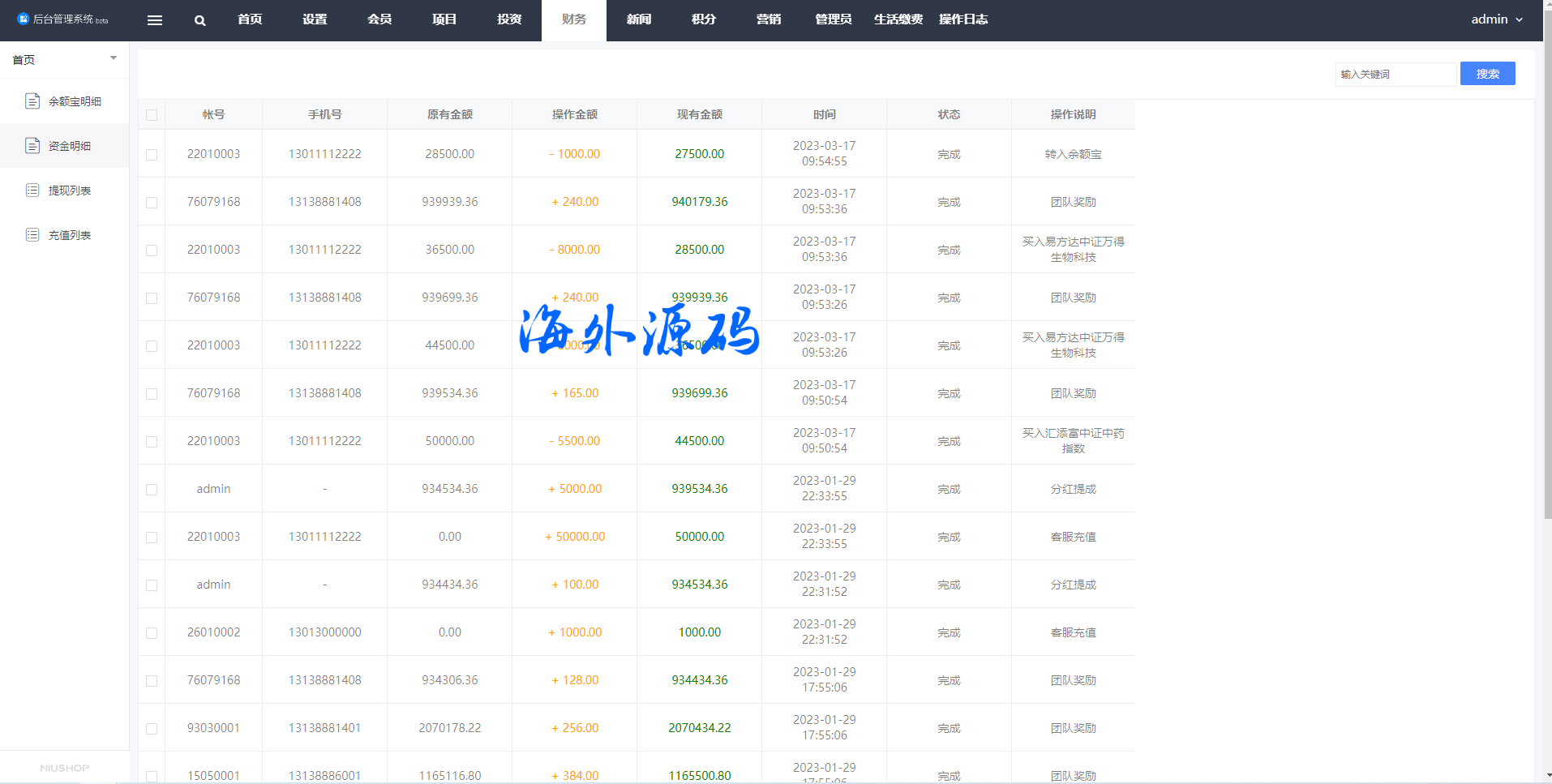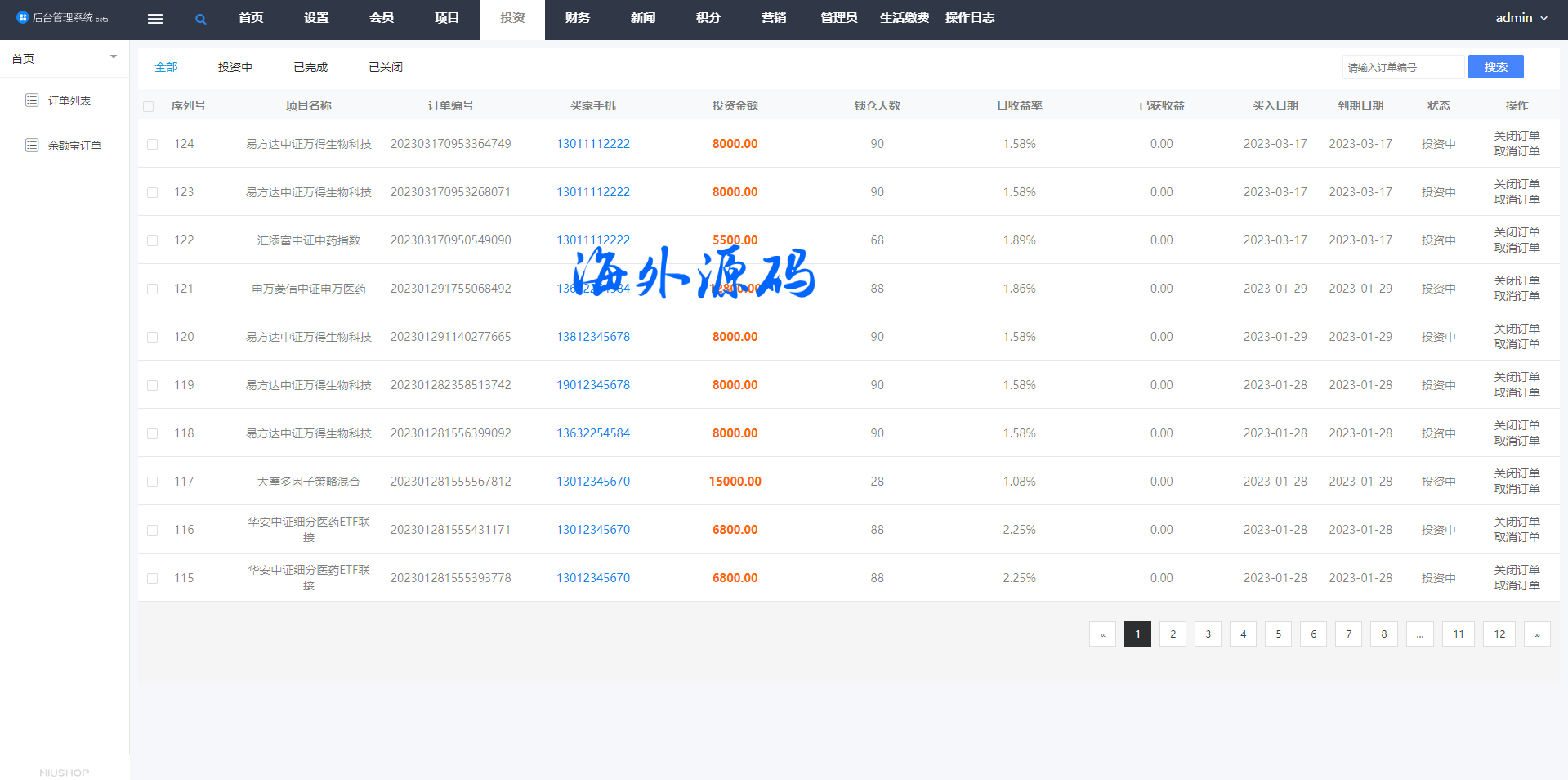 系统适用行业:项目投资、影视投资、理财投资、充电宝项目、外汇、基金、国际大宗商品、USDT货币投资等。