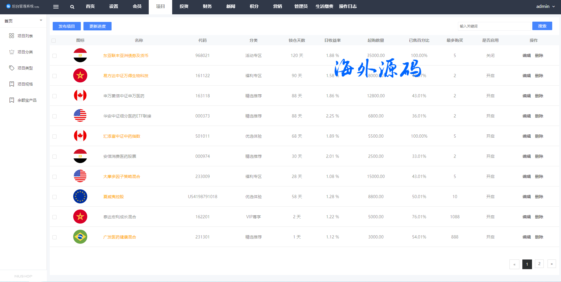 算是一套比较不错的下项目投资系统,系统是thinkPHP框架前端html的