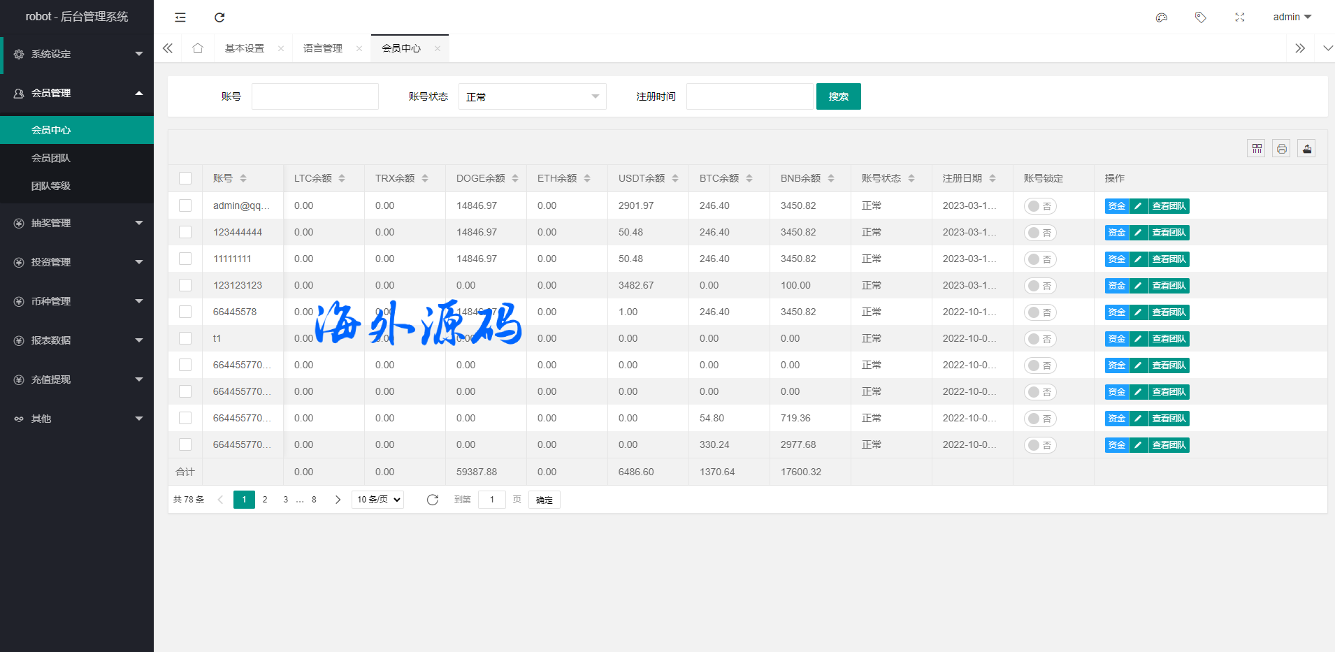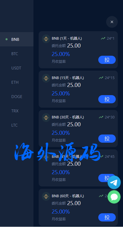 vue前端虚拟币投资系统/海外多语言基金虚拟币投资返利源码