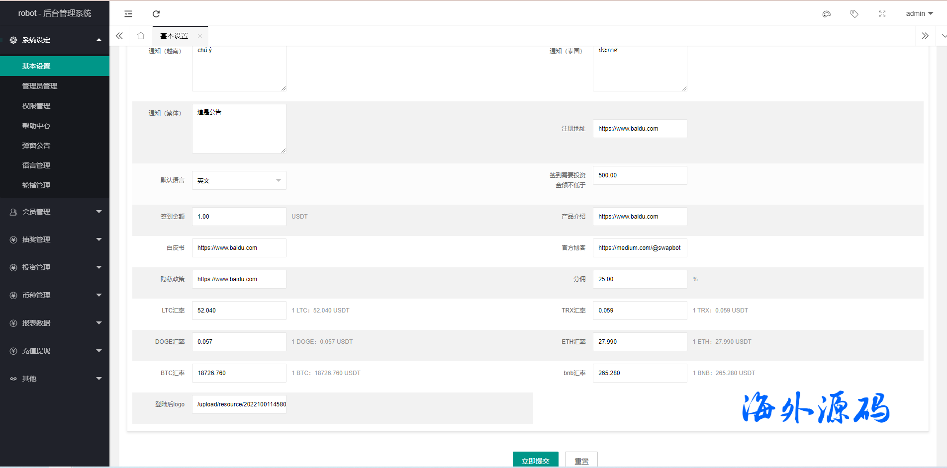 此套虚拟币质押投资系统几乎完美,前端多语言后台可设置默认语言