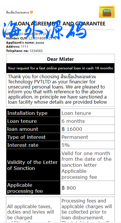 泰语小额贷款系统/泰国贷款源码/海外套路贷/贷款平台源码