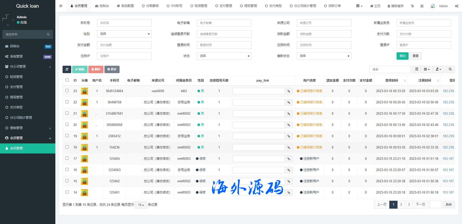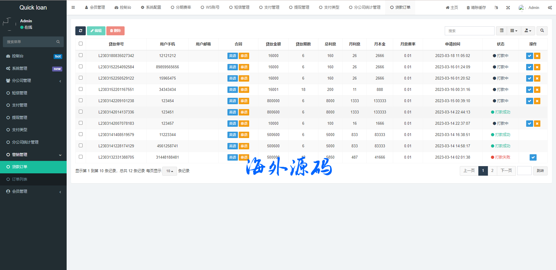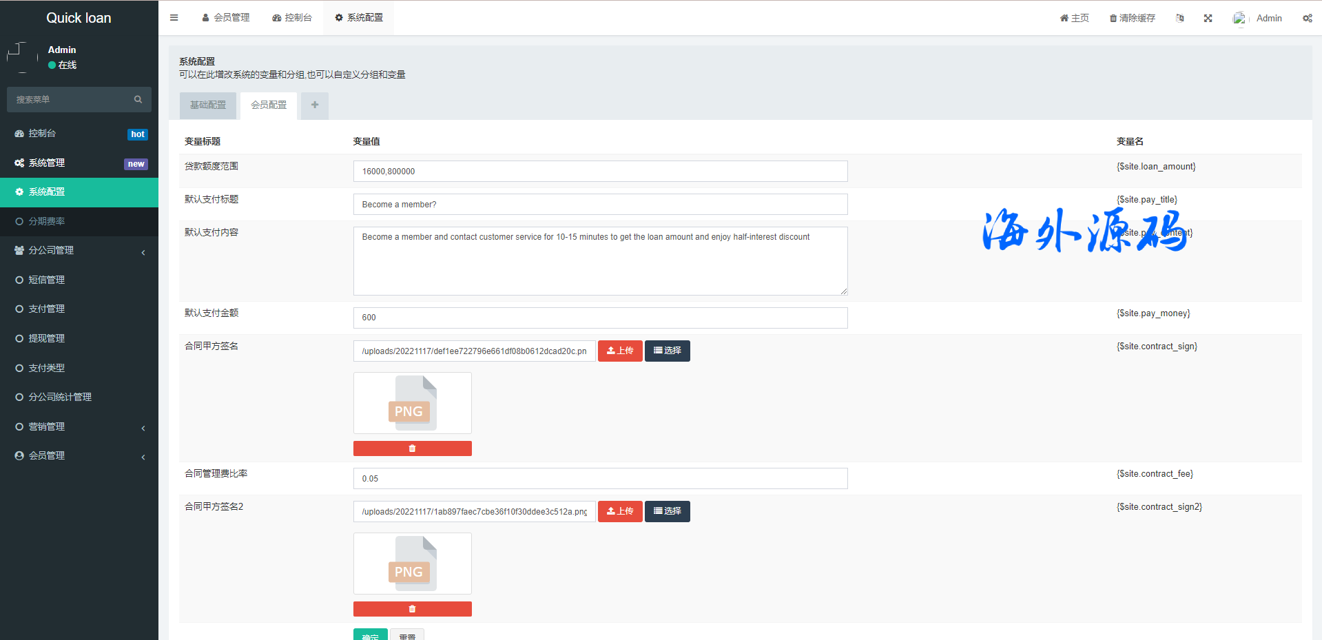 海外贷款平台/小额贷款系统/信用分/合同/提现码
