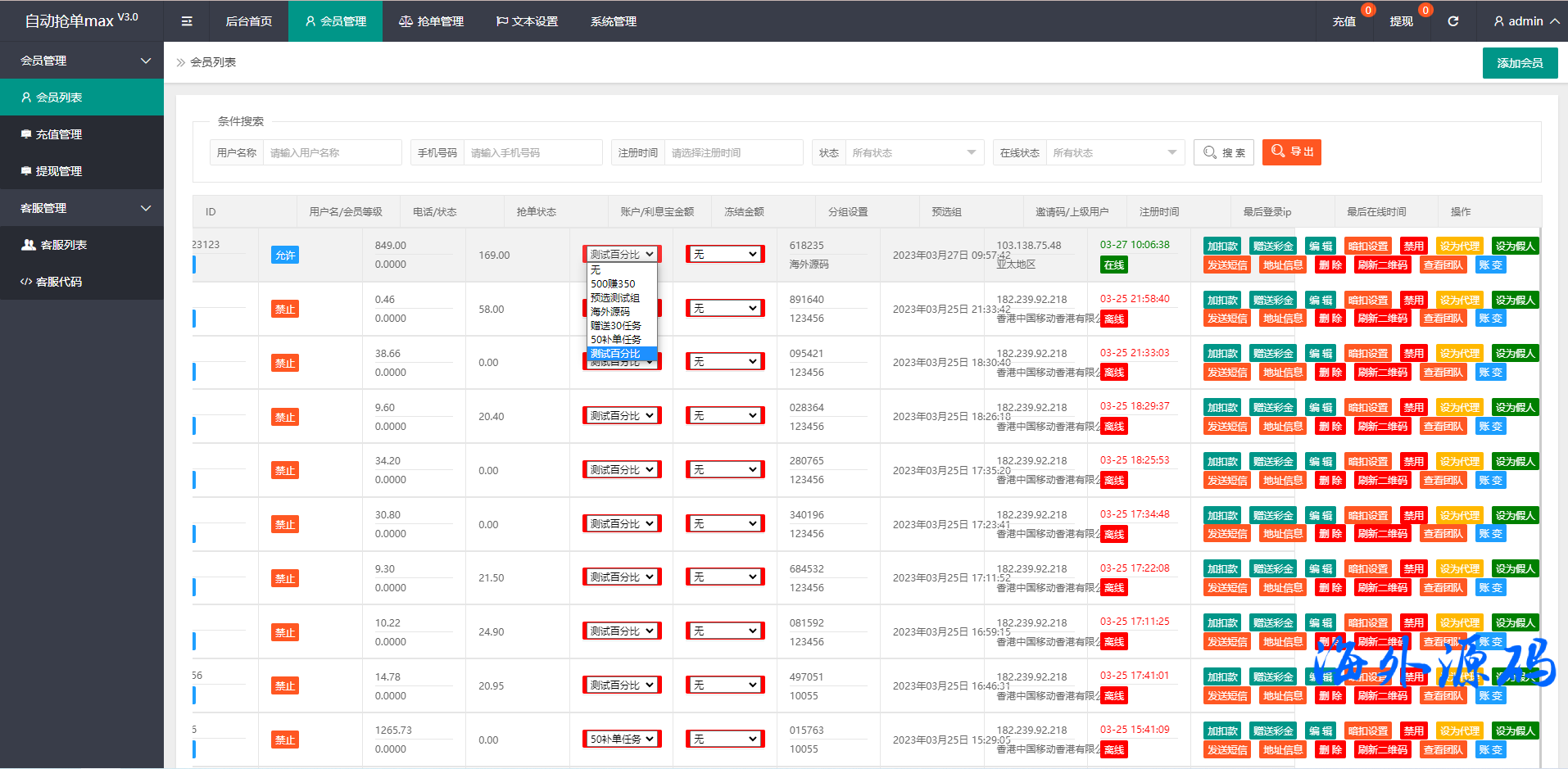 海外抢单刷单系统/多语言抢单/打针/做单/分组杀