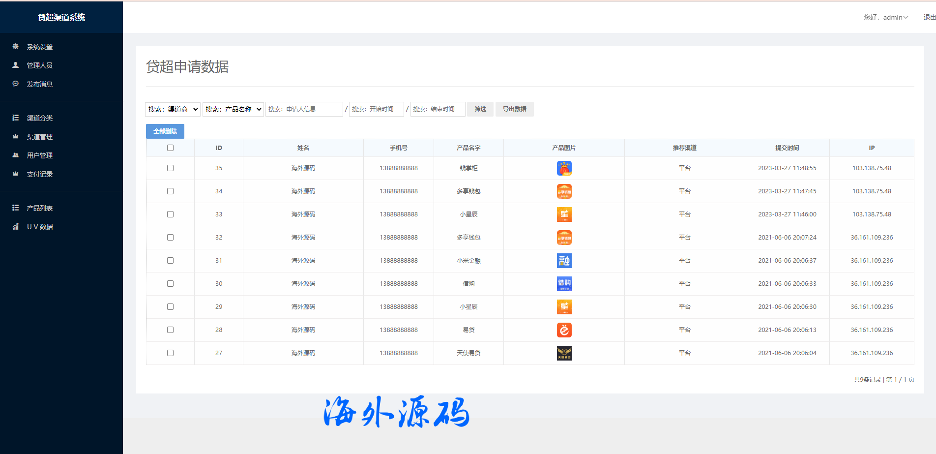 小额贷款超市系统功能齐全 UI大气 短信 支付 PV UV数据 渠道推广 扣量
