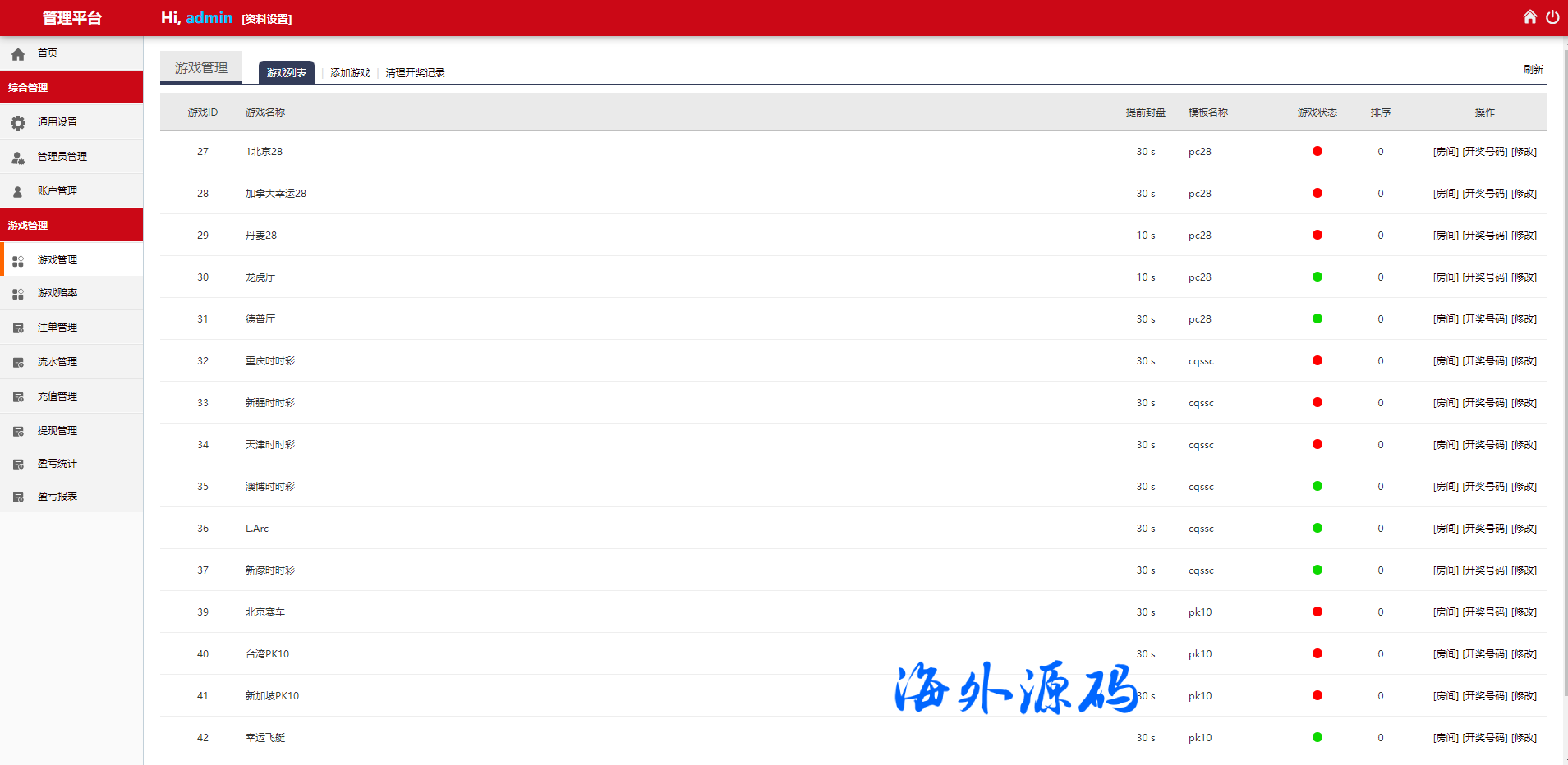 28游戏源码/时时彩游戏系统/28竞猜源码/Cp系统批量预设开奖