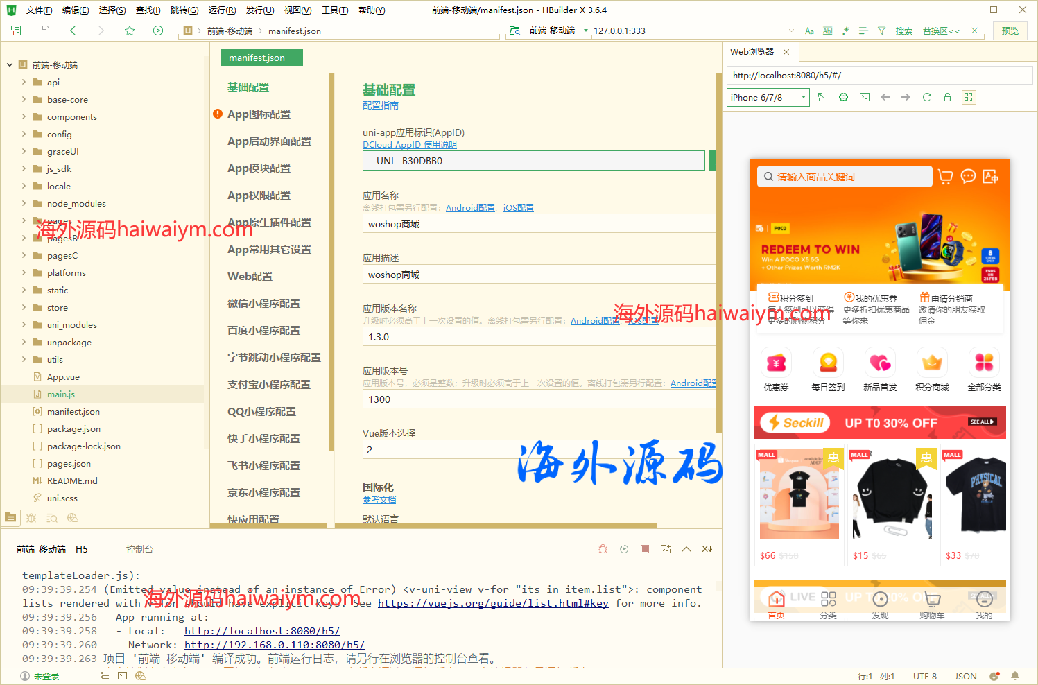手机端为uniapp源码,pc端是vue源码,移动端商家管理也是uniapp,后端为thinkphp框架