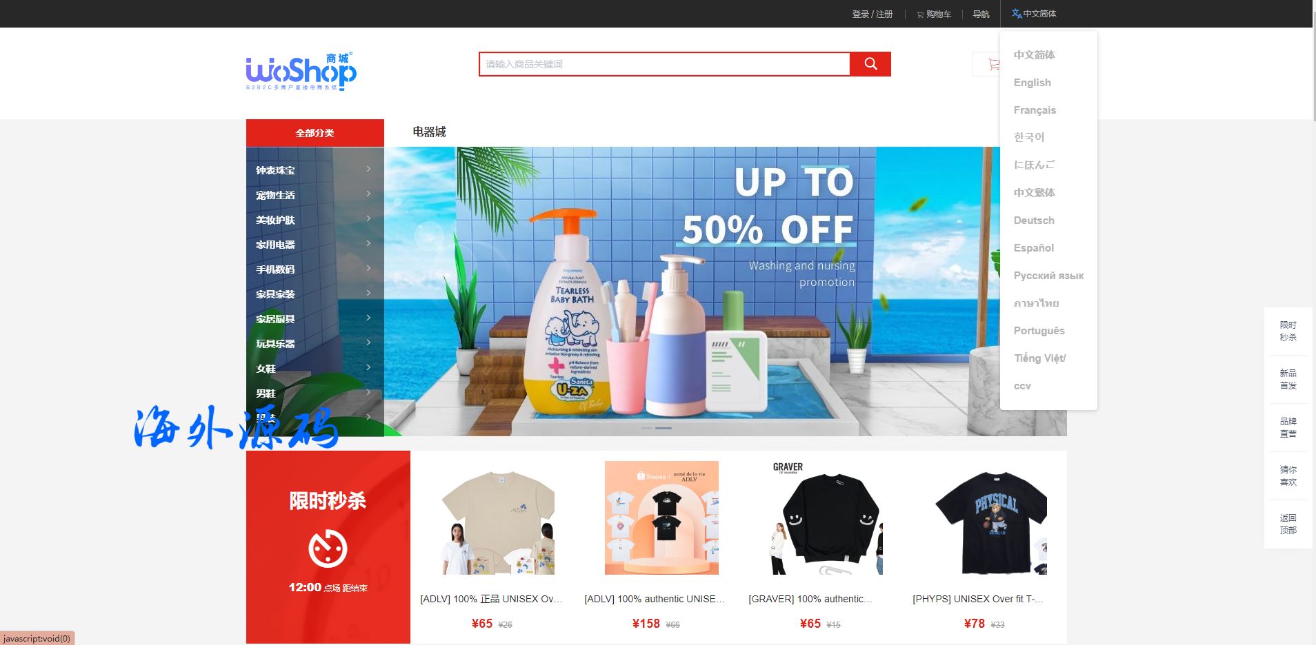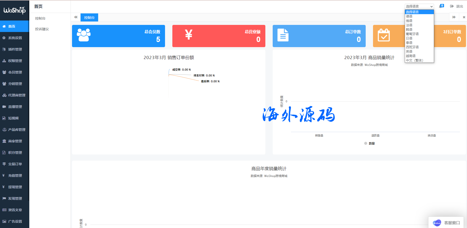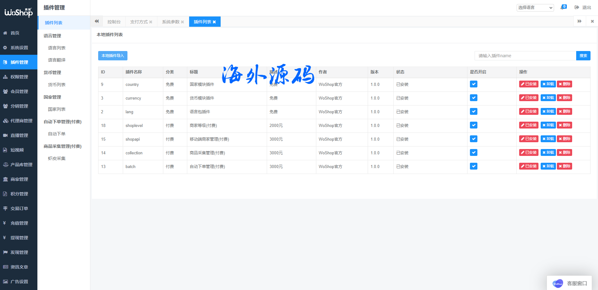 全套WoShop多商户跨境电商系统/付费插件/多语言/国际支付