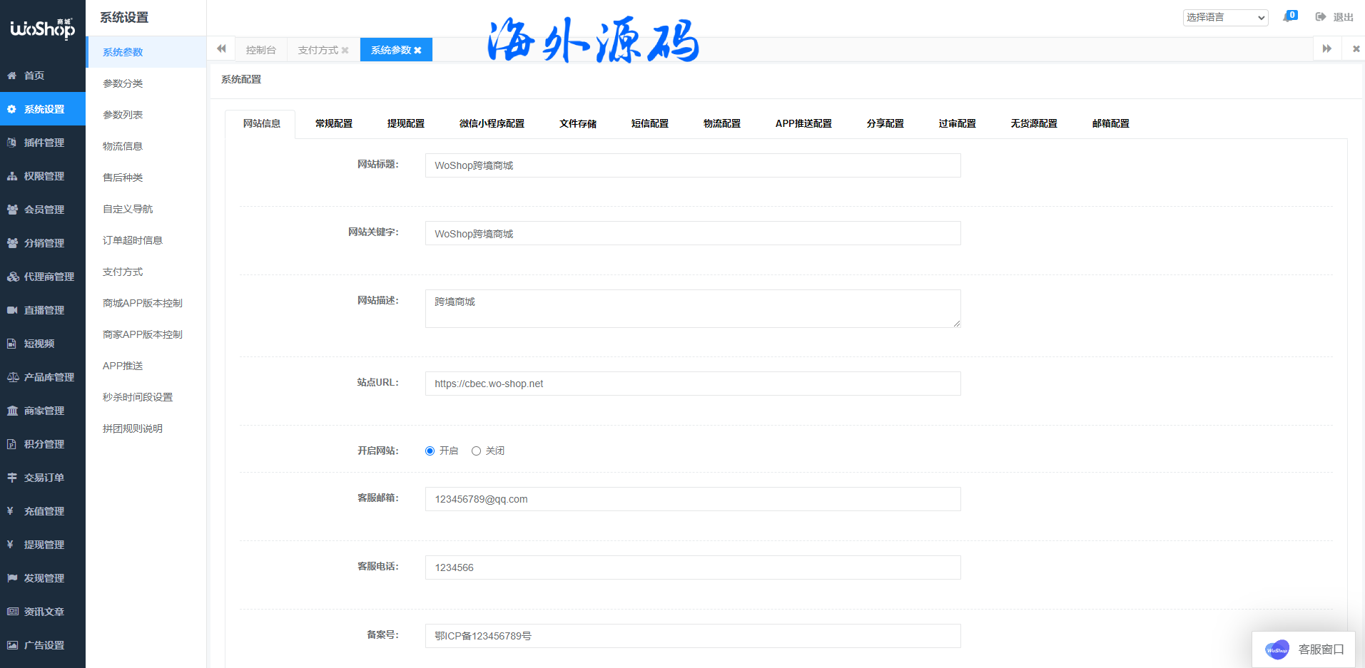 此套是是最新的全套WoShop多商户跨境电商系统,附带付费插件