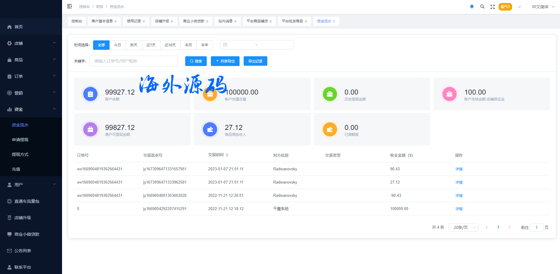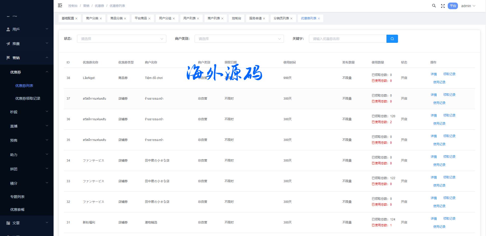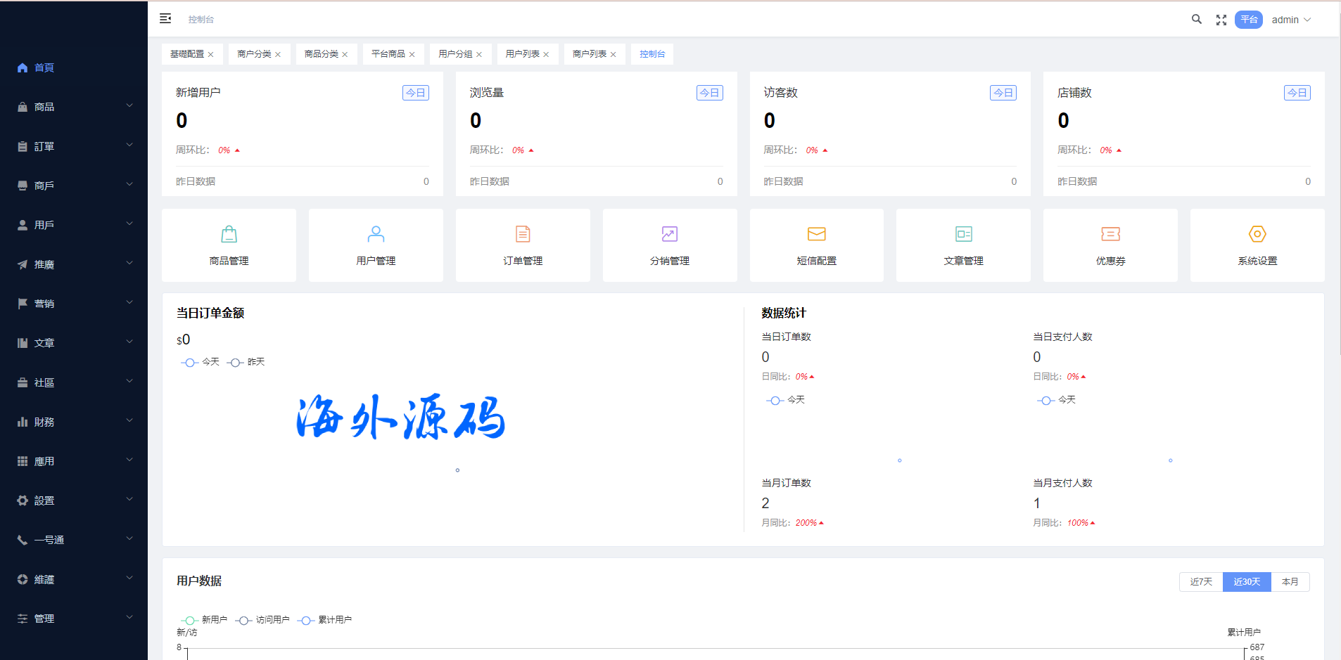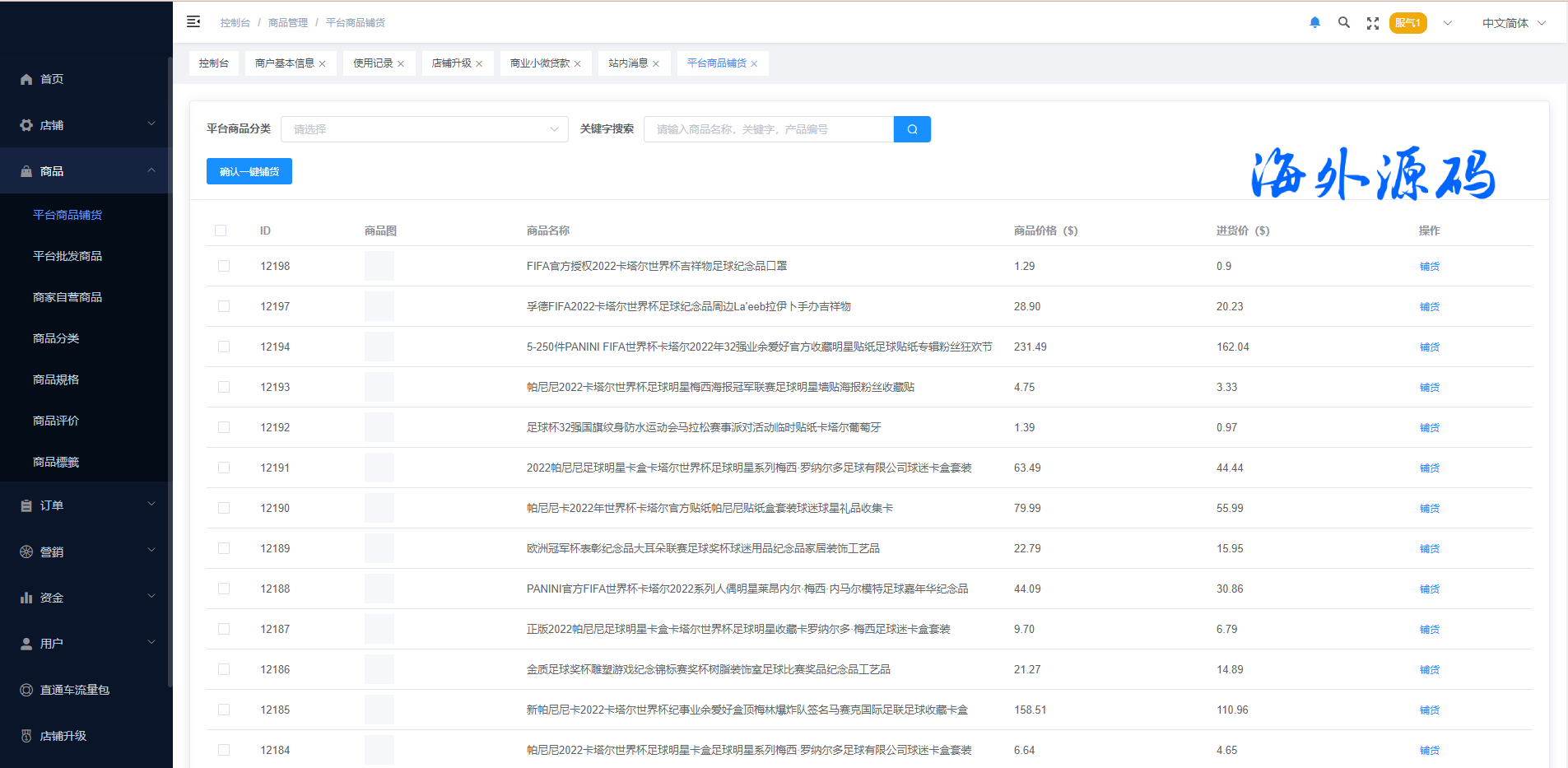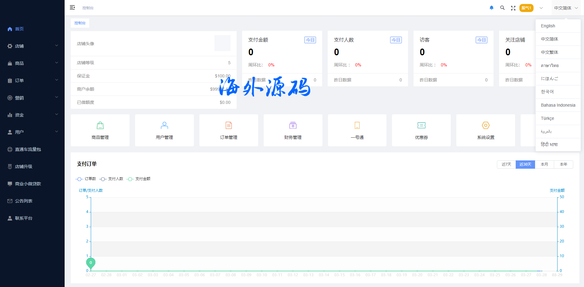 系统特点关键词:多商户入驻、商品一键铺货、进货差价、平台代发、商品采集、店铺保证金、USDT充提、店铺虚拟访客关注加购数据、一键批量注册用户、批量下单爆单、定时下单、自建物流信息等