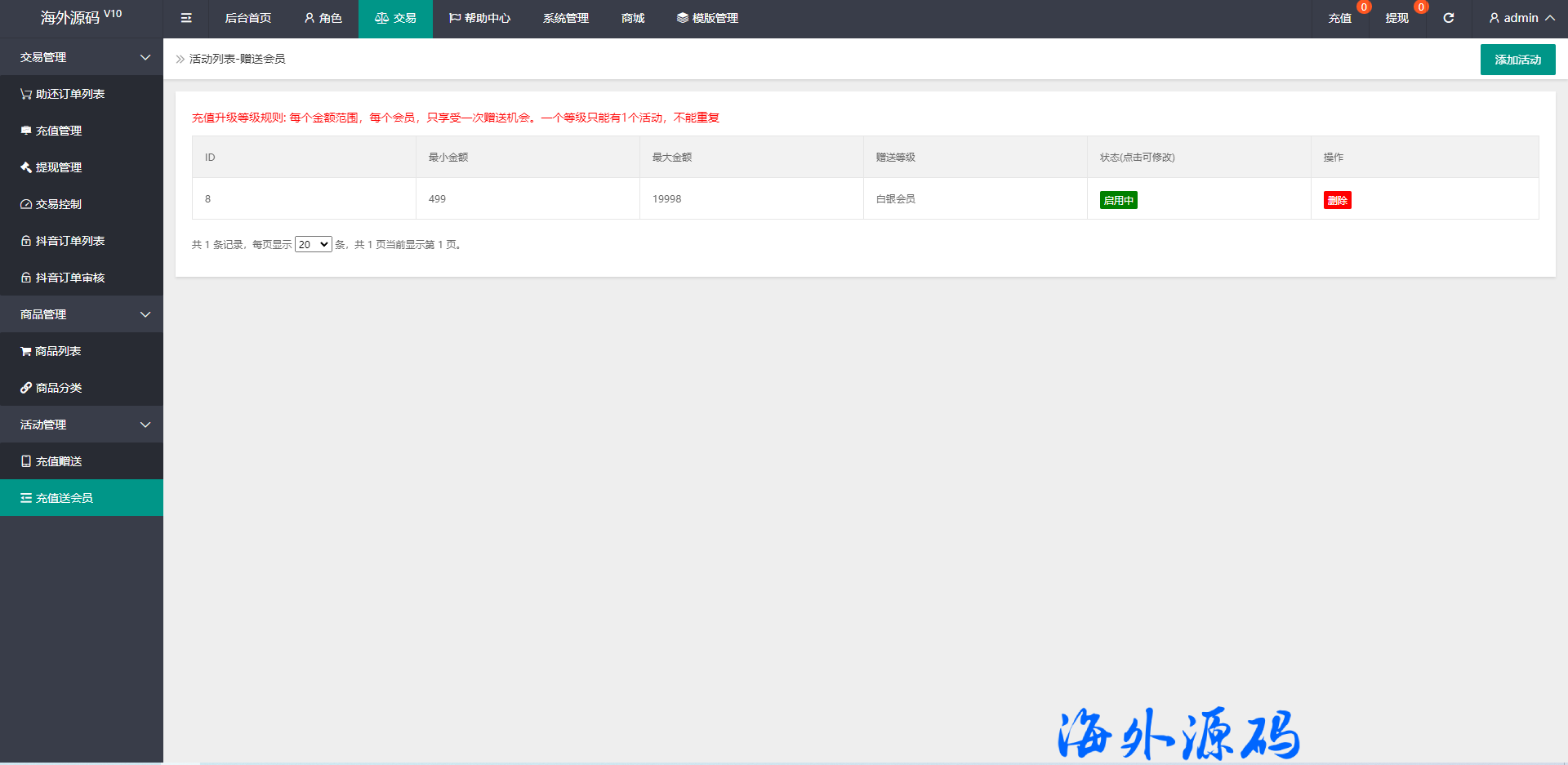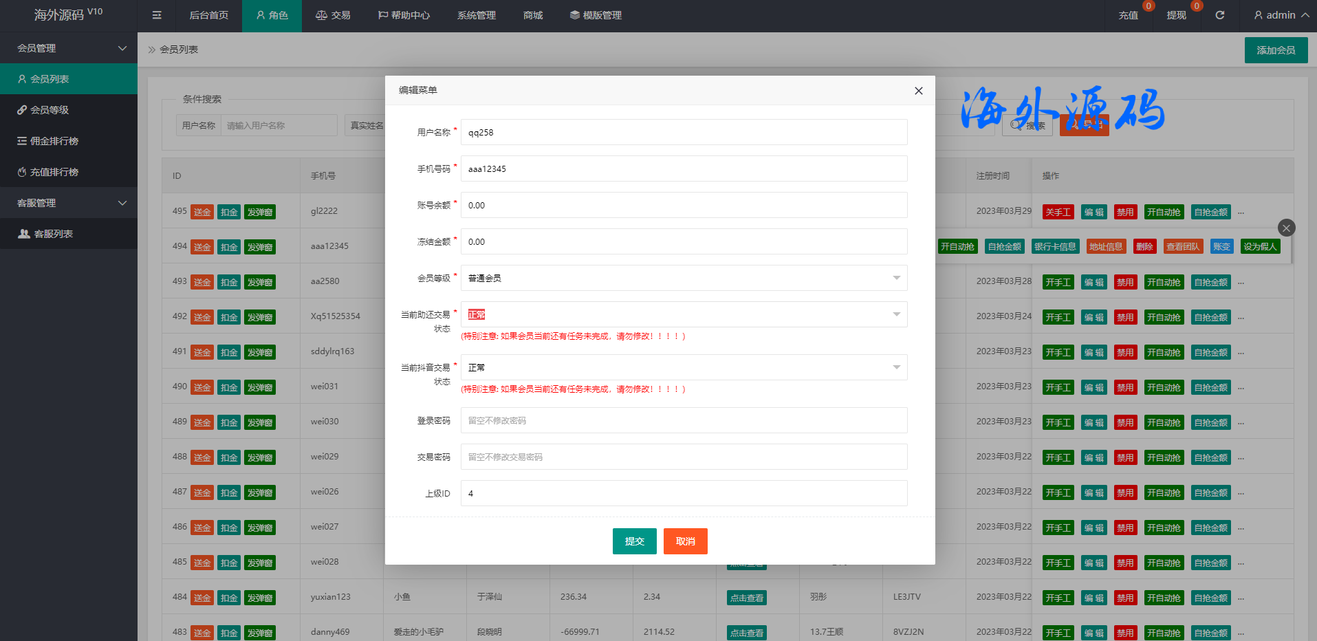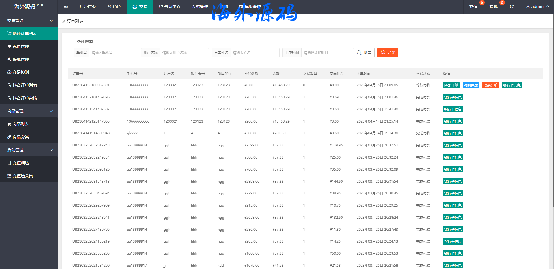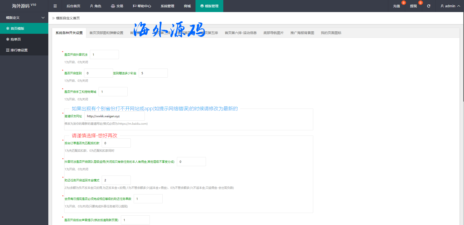 手动刷单后台可设置用户订单金额等,新增了抖音玩法前端提交后台审核,系统新增多个功能