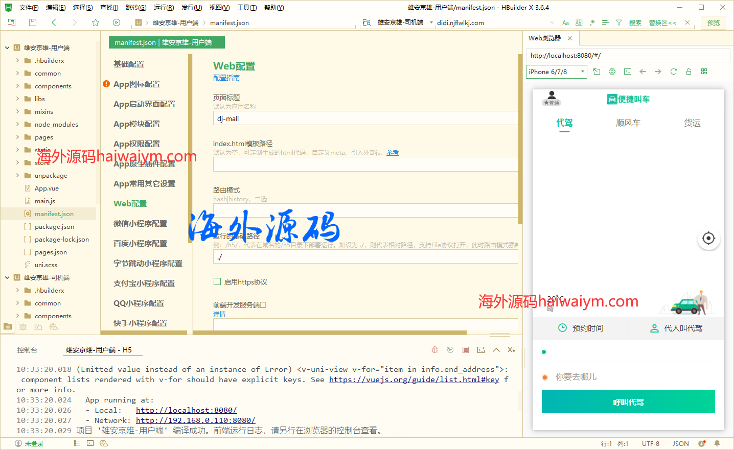 前端跟司机端均为uniapp源码,后端是Fastadmin框架,单源码无教程需要的来