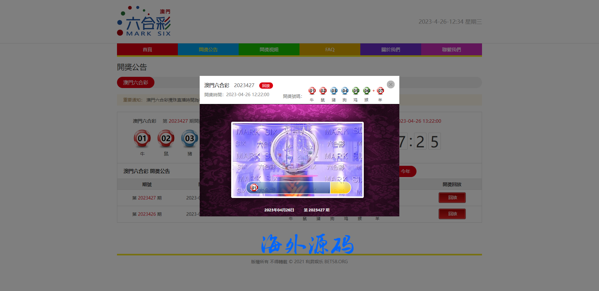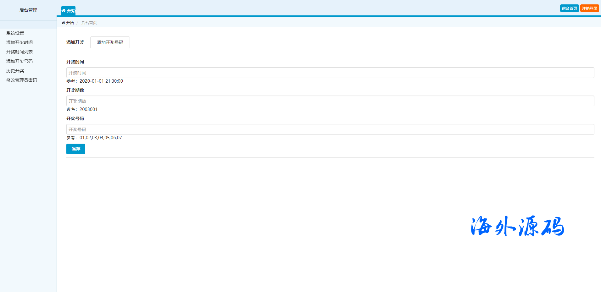 系统是澳门六合彩开奖网带开奖摇号视频,开奖的期数是自己后台手动添加的