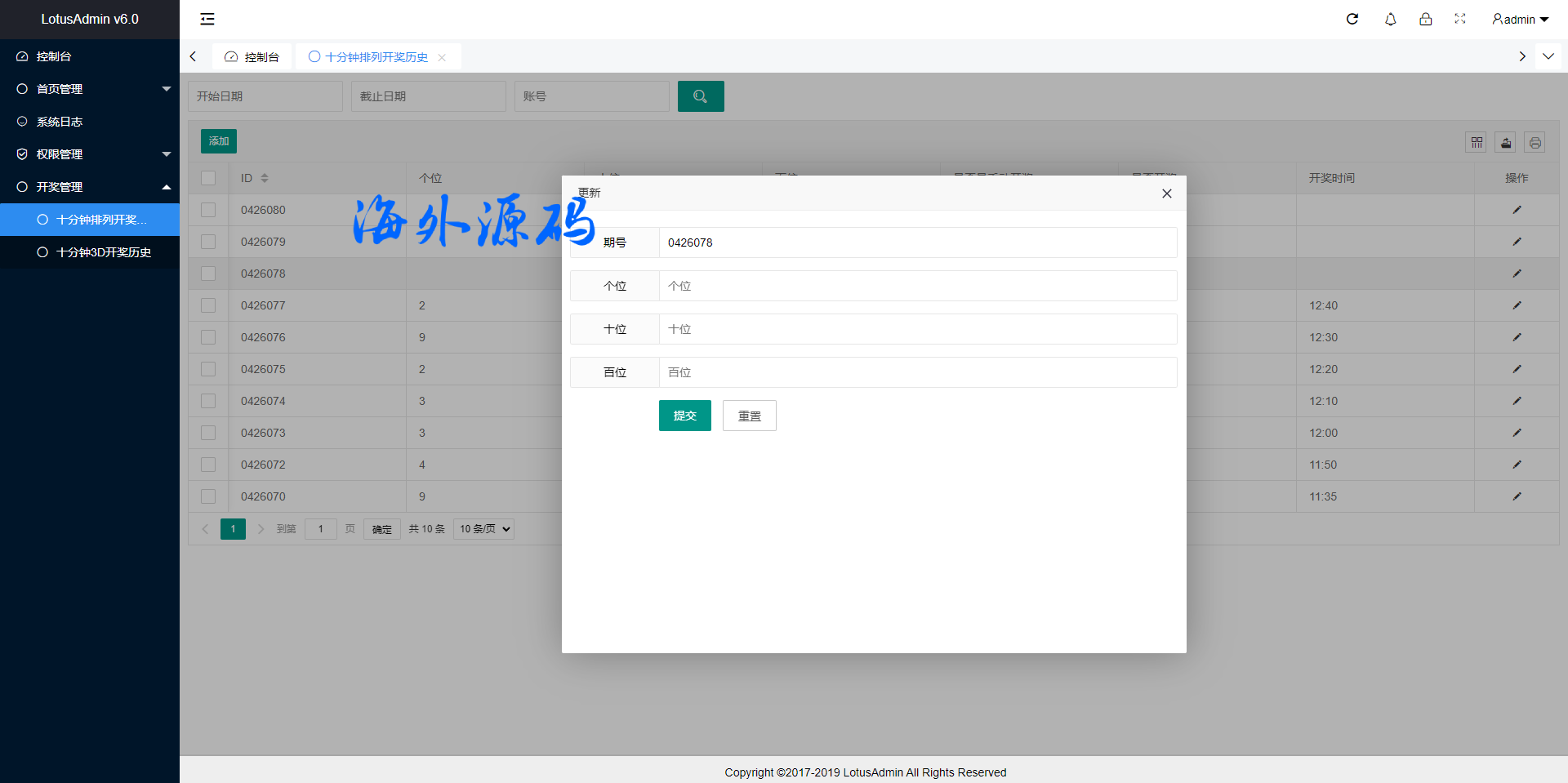 开奖号码自动采集的,也可以自己后台手动设置开奖信息